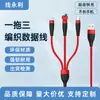 Cable de datos personalizado de carga súper rápida de 66 W Uno a tres Cable de carga multifunción trenzado Adecuado para Apple Huawei Typec