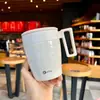 Taza termo de acero inoxidable para café americano frío, taza para latte con taza portátil negra con pajita