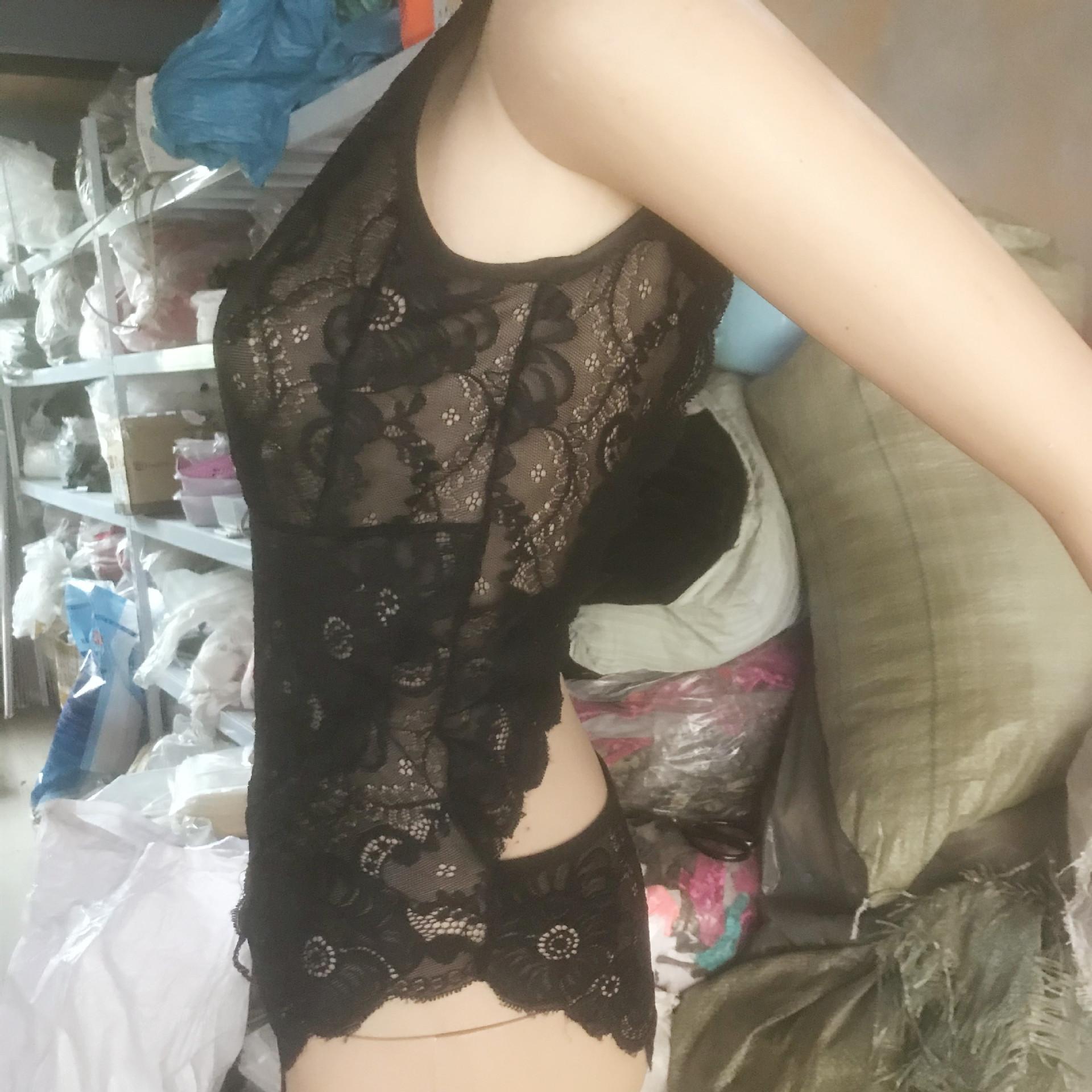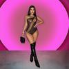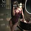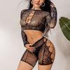 Lencería sexy transparente hueca de una pieza de malla de encaje sin espalda con abertura al por mayor europea y americana para club nocturno en casa