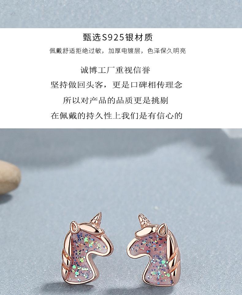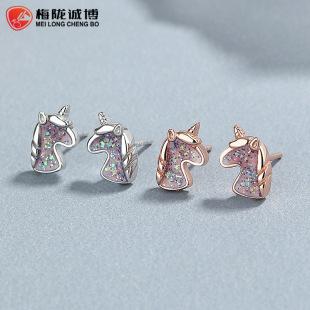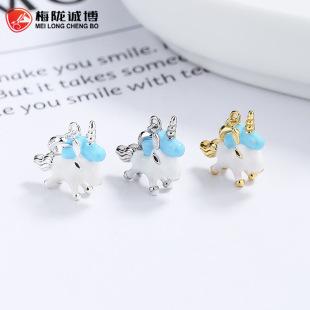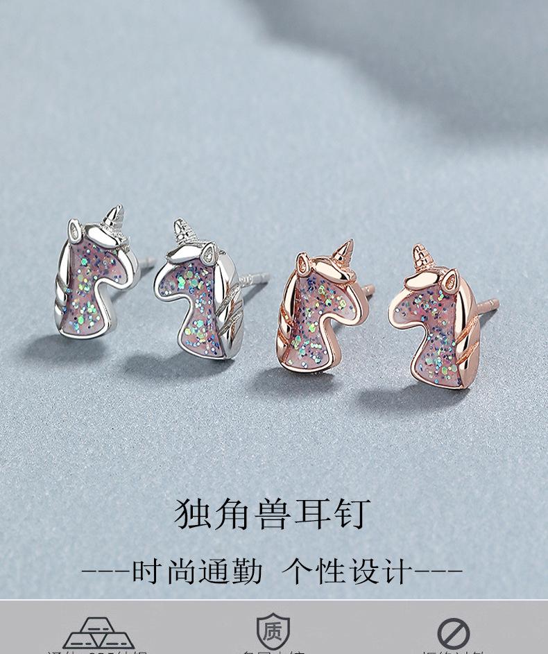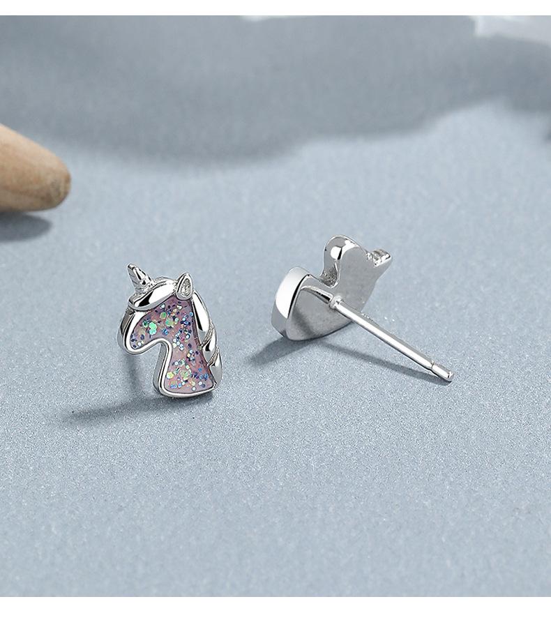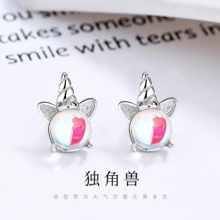 Pendientes de unicornio de plata de ley 925 para mujer, moda de verano, diseño de oreja de unicornio de fantasía, joyería con personalidad