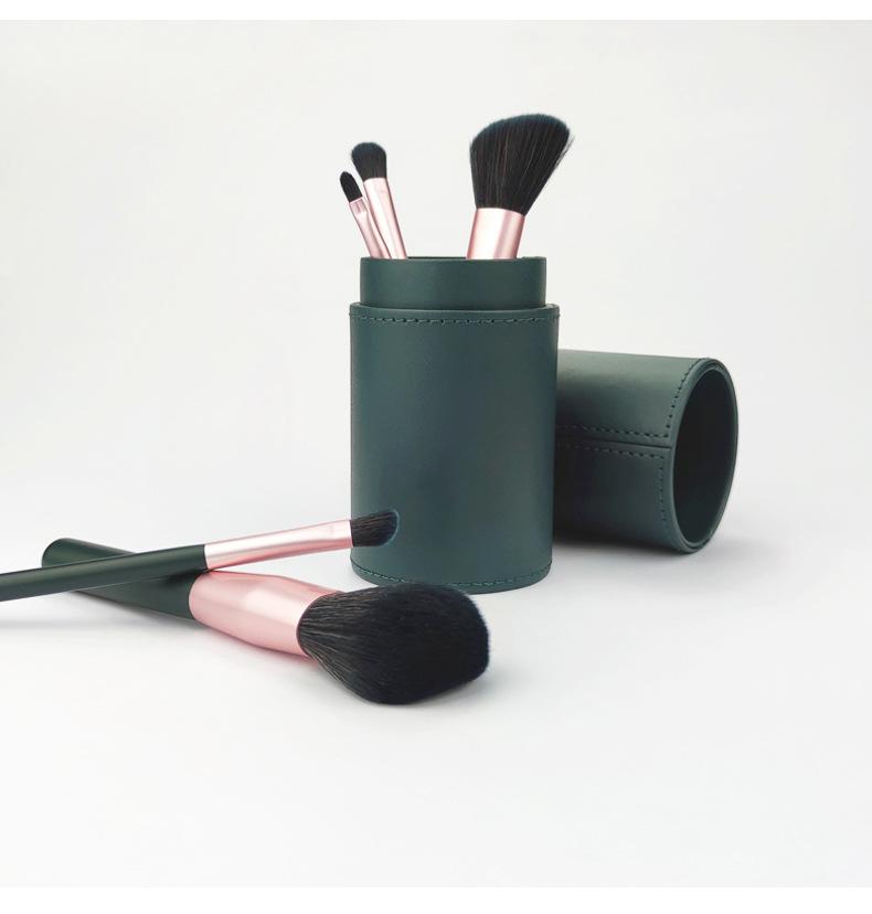 Juego de 5 brochas cosméticas juego completo con cubo portátil para principiantes brocha para polvo rubor sombra de ojos sombra para nariz punta labial