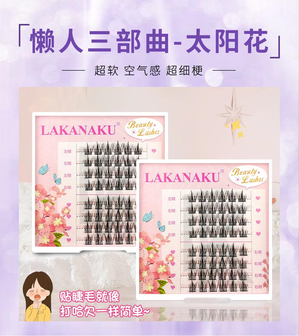 Pestañas Postizas Lazy Trilogy Girasol Tallo Ultrafino Abanicos de Plumas Segmentadas Autoinjerto Pestañas de Hada Cómic