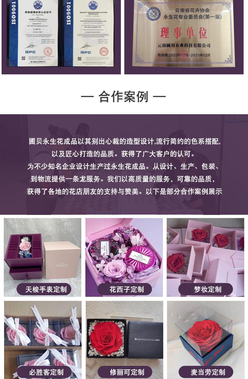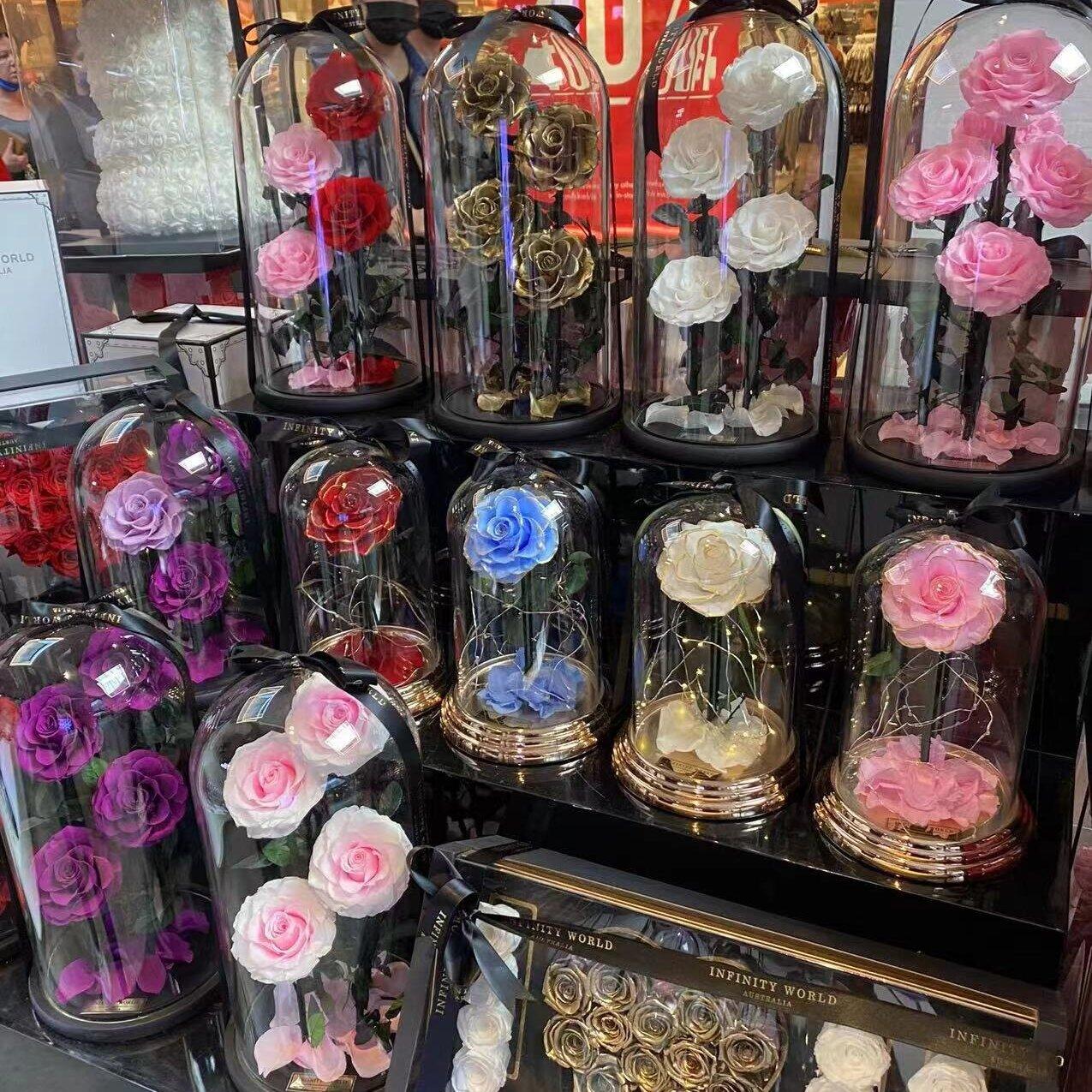 Yunnan Huazhe Día de San Valentín Día del Maestro Regalo Flor Eterna Cubierta de Vidrio Producto Caja de Regalo Producto Terminado Venta al por Mayor Regalo de Flor Eterna