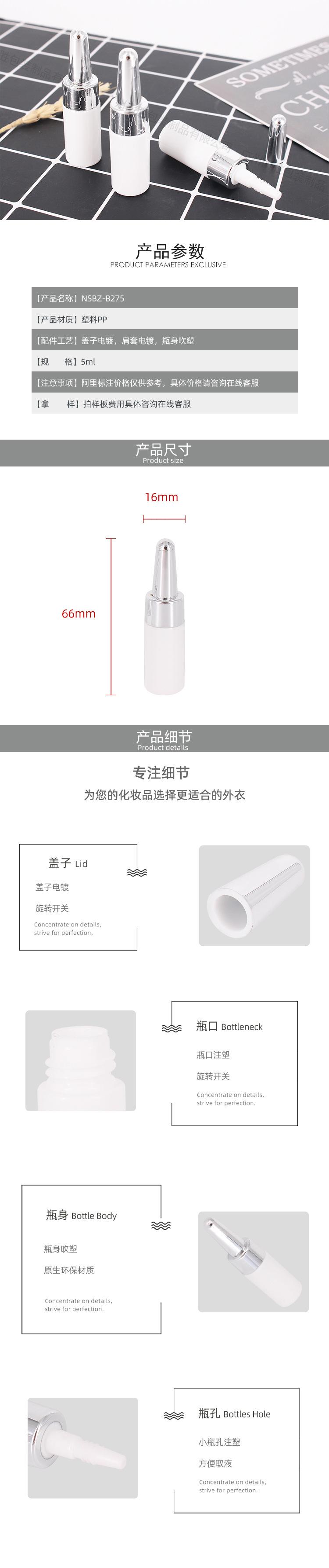 Ampolla de plástico galvanizado de 5 ml