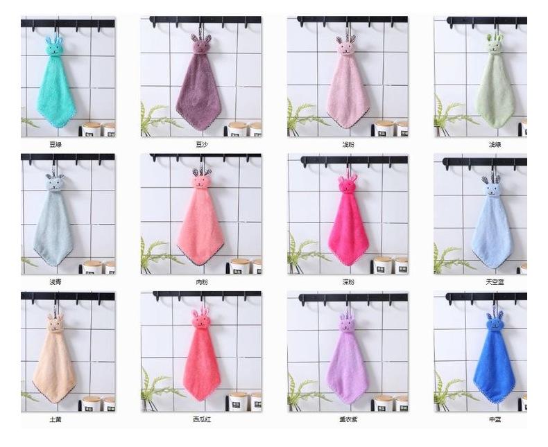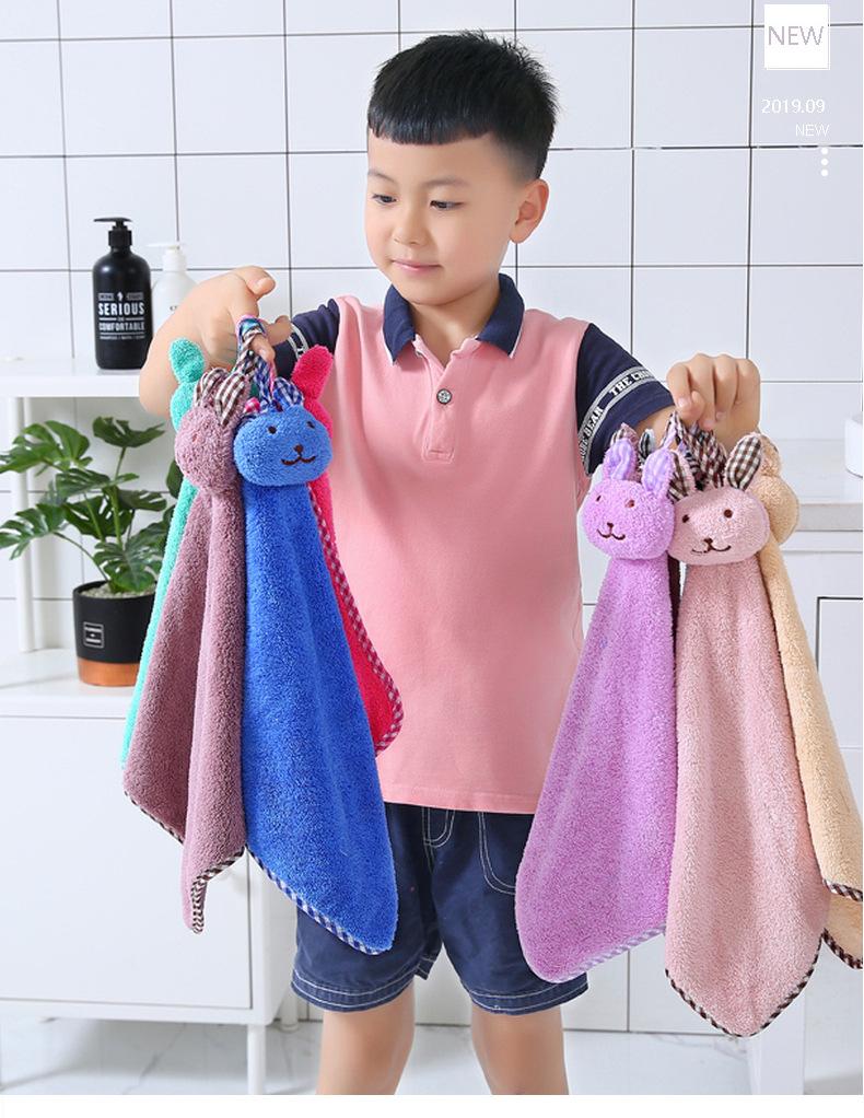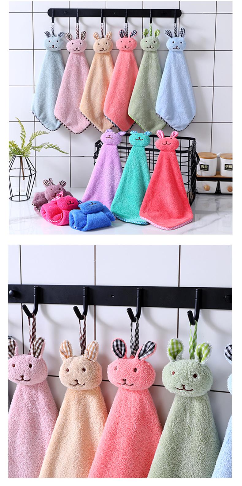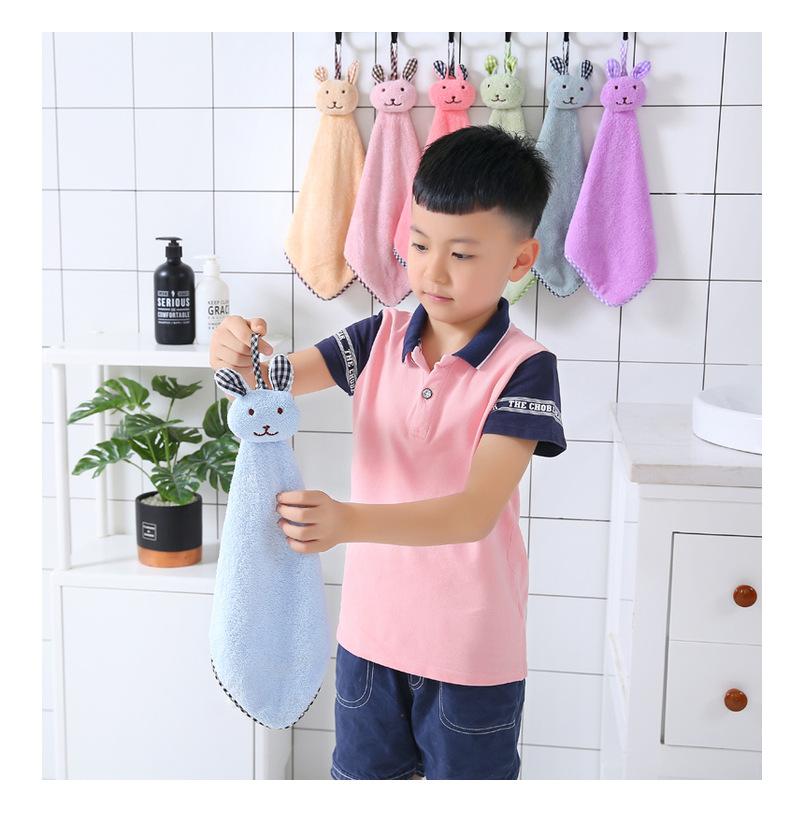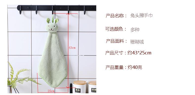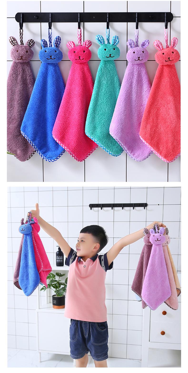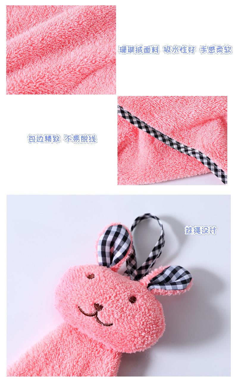 Toalla de mano absorbente de agua con cabeza de conejo de dibujos animados y forro polar coral grueso