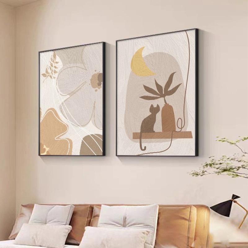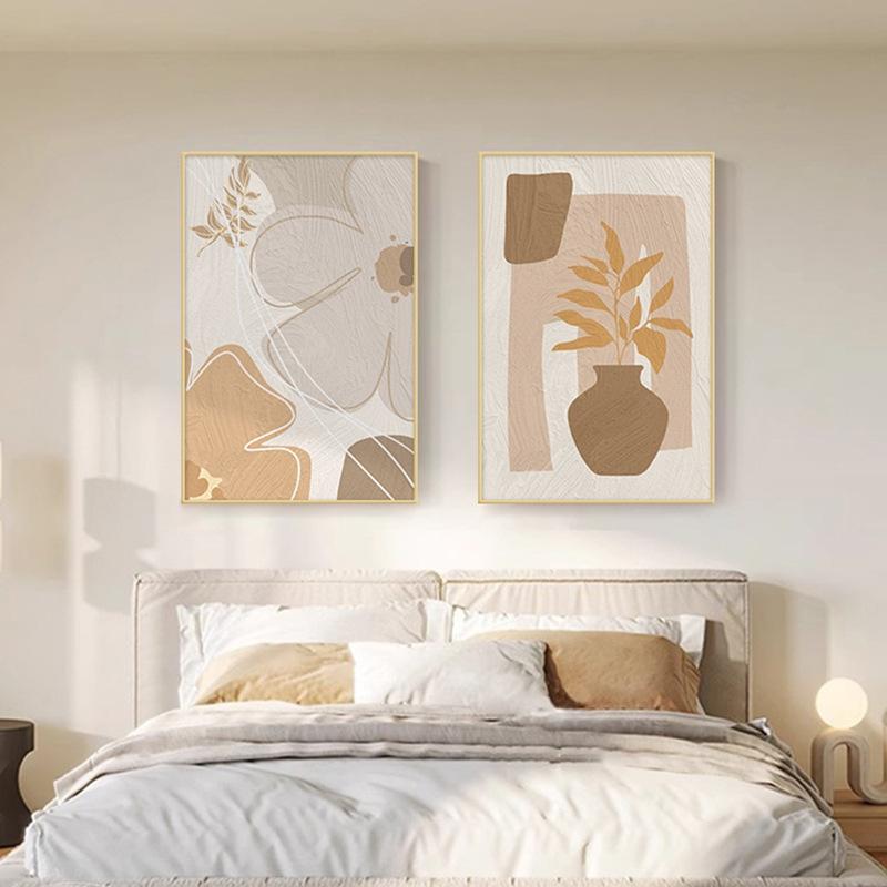 Pintura decorativa para dormitorio de estilo crema, mural de pared nórdico Morandi para segundo dormitorio, pintura para cabecera de dormitorio principal avanzada