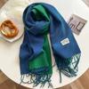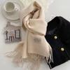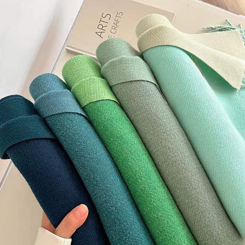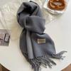 Bufanda Larga Cálida de Otoño e Invierno Nueva Color Puro Imitación Cachemira Doble Cara con Flecos Bufanda Femenina Gruesa Estudiantil Chal de Doble Uso