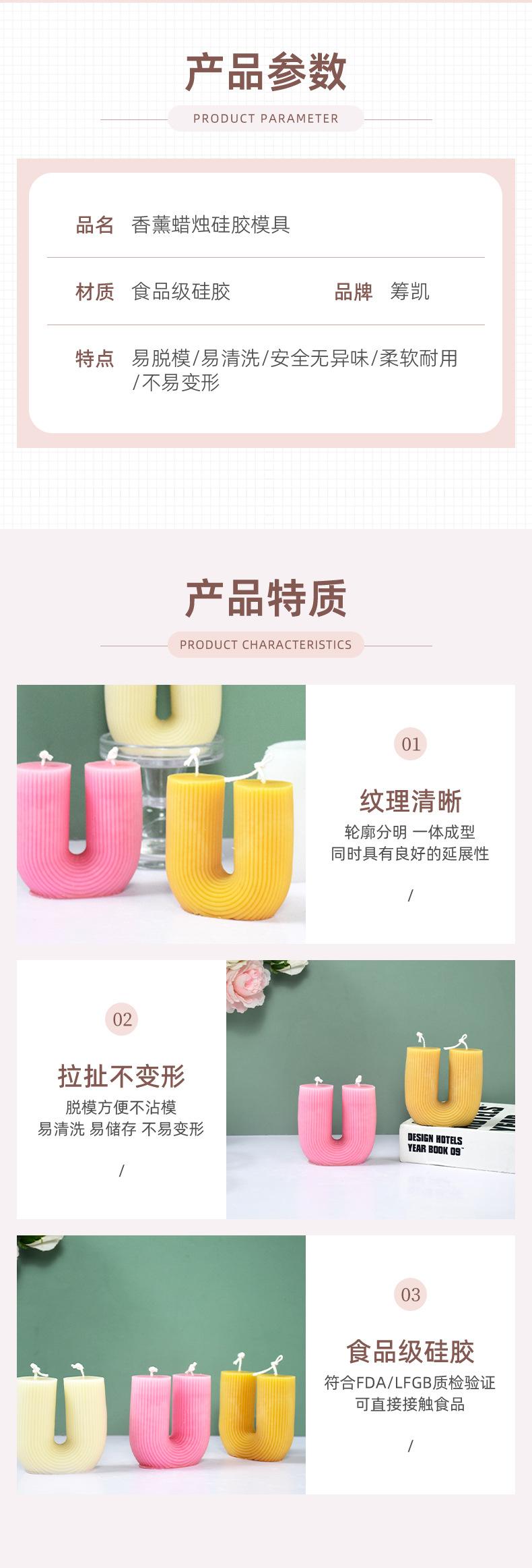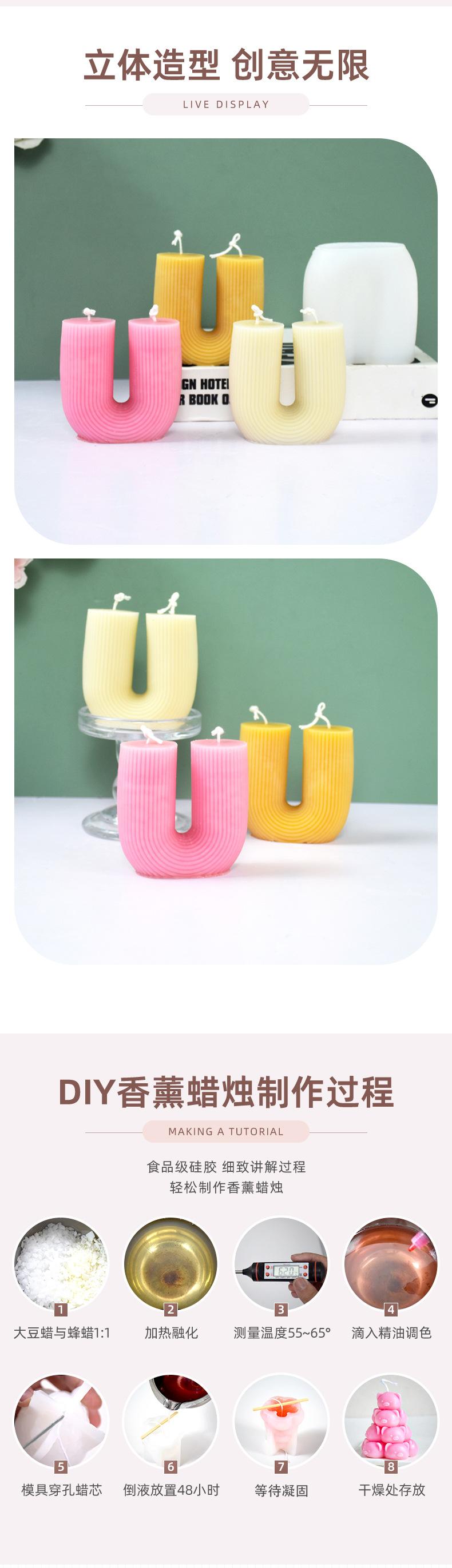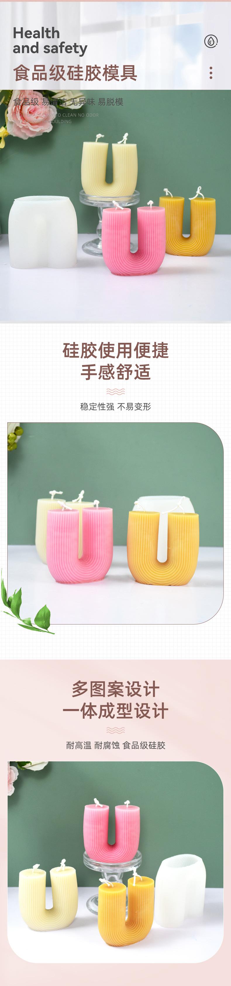 Nuevo molde de silicona para velas de aromaterapia en forma de U transfronterizo, molde decorativo geométrico a rayas simple DIY, disponible en stock.
