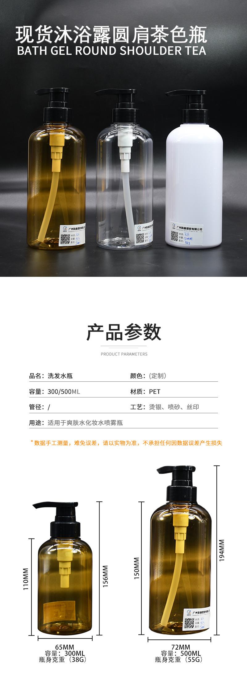 Botella de gel de ducha de 300 ml/500 ml, disponible en stock, para champú de mascotas, cabezal de bomba a presión, botella de plástico para champú.