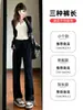 Pantalones Negros de Protección Solar para Mujer Verano 2025 Nuevo Pantalón Recto Drapeado de Cintura Alta Casual de Pierna Ancha con Cordón Pantalones Deportivos de Seda Helada