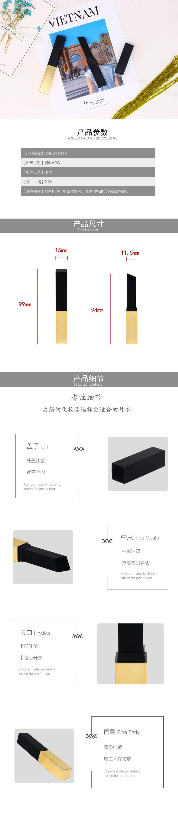 2.2g tubo de lápiz labial de barra de oro pequeño oblicuo