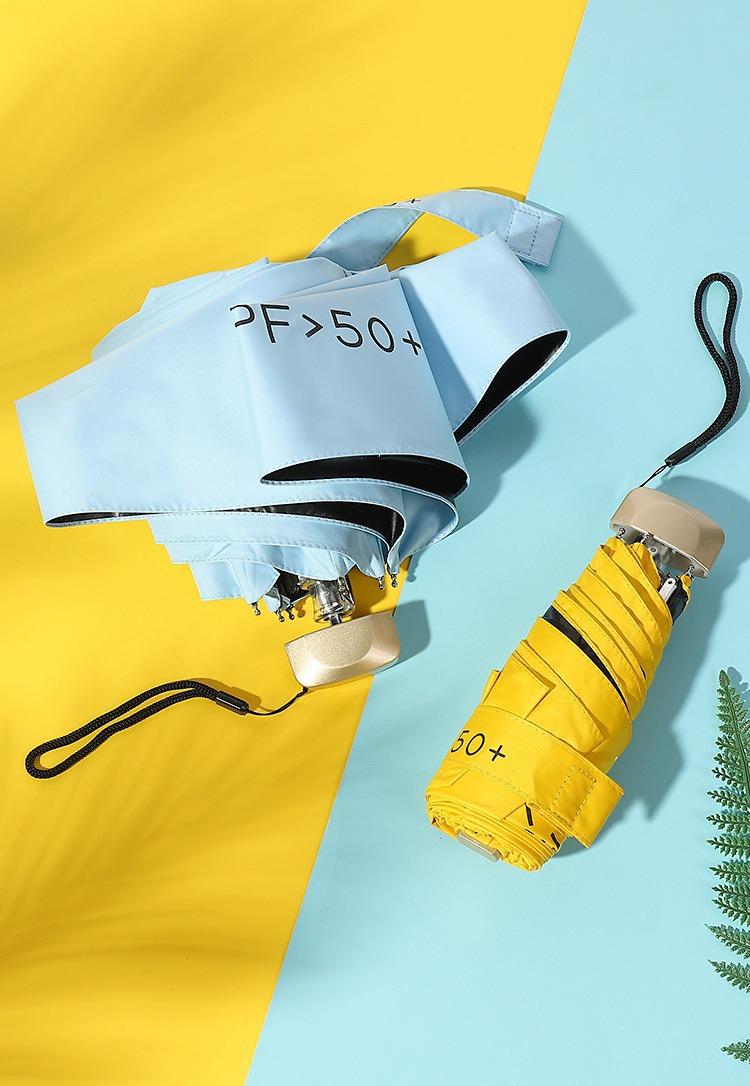 Mini Paraguas de Sol Plano de Cinco Pliegues para Mujer Portátil Compacto Protector Solar Ultravioleta y Protección contra la Lluvia Doble Propósito Sombrilla de Goma Negra
