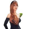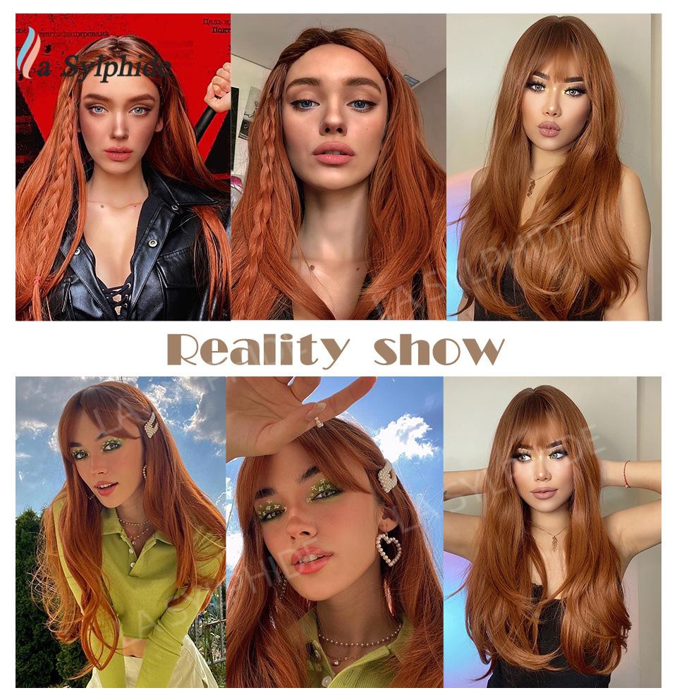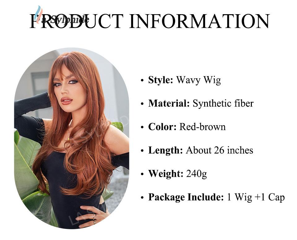 Peluca para mujer, cabello largo, liso, sintético, color marrón rojizo y cobre.