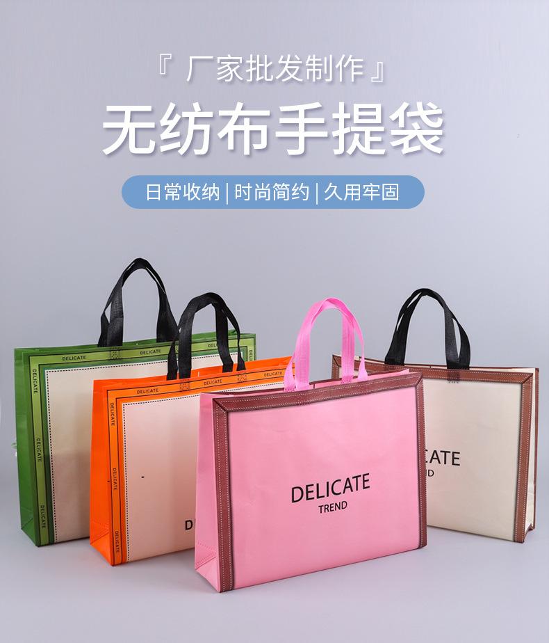 Bolsa de compras portátil de tienda de ropa de estilo simple en stock película bolsa no tejida publicidad bolsa no tejida