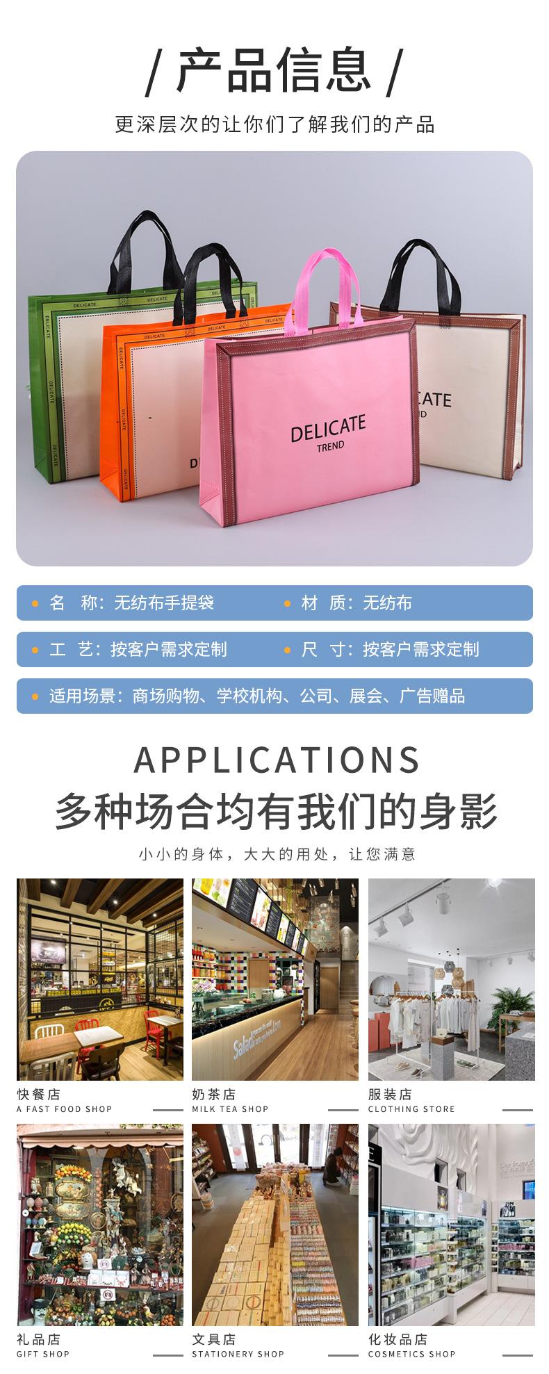Del green; small size 32*27*10; color printed laminated non-woven fabric, Del green; medium size 42*32*10; col...