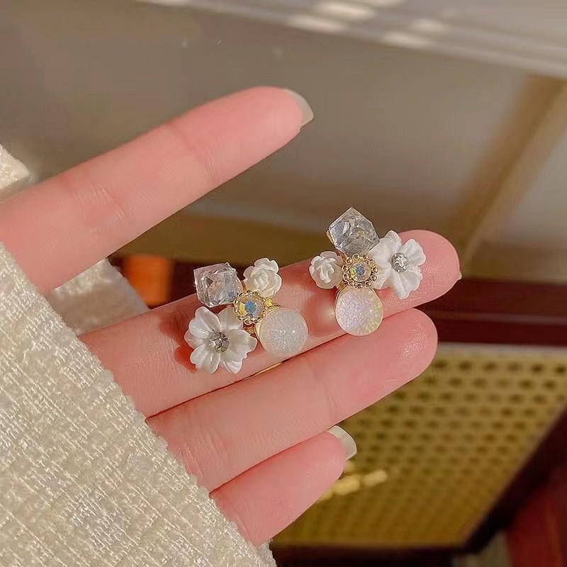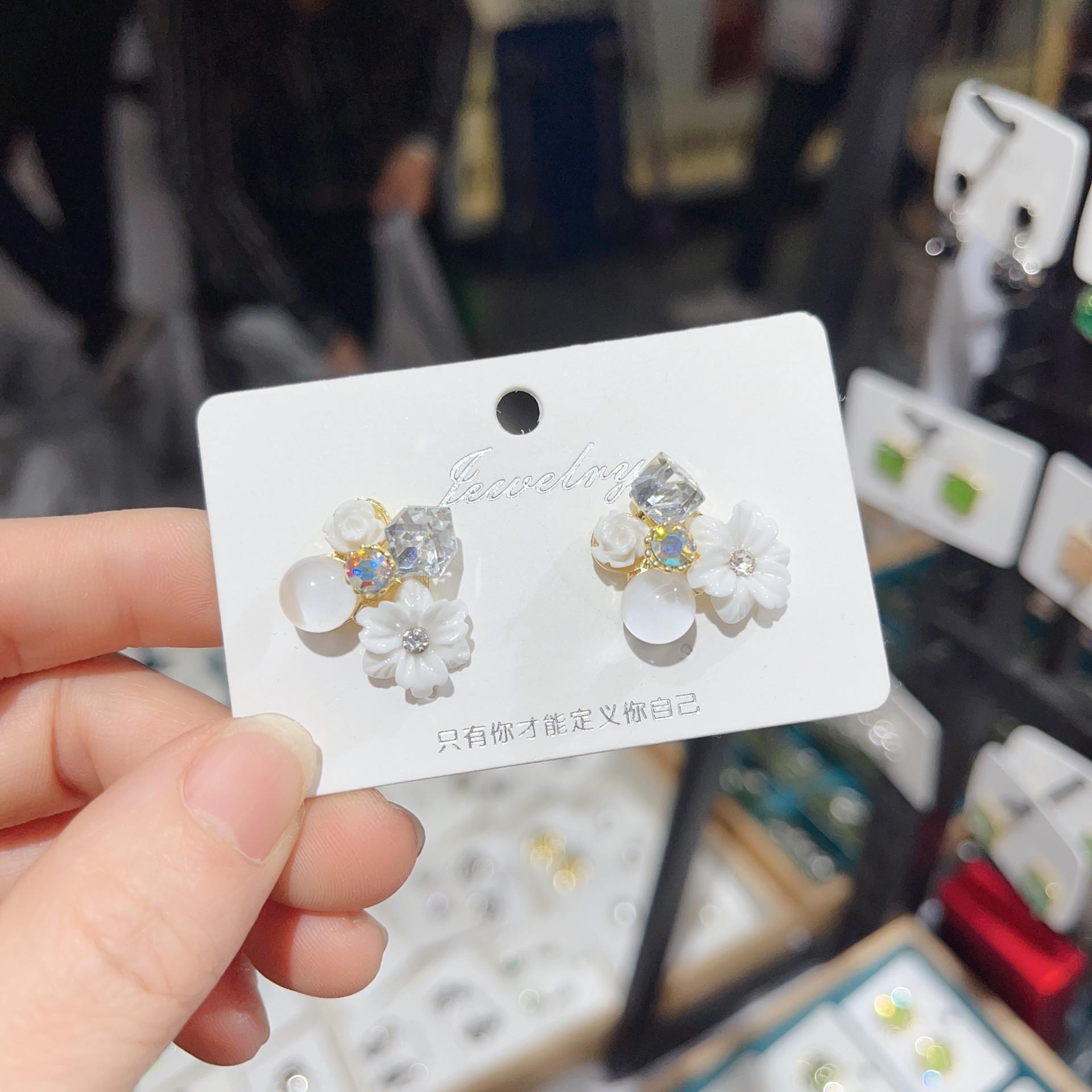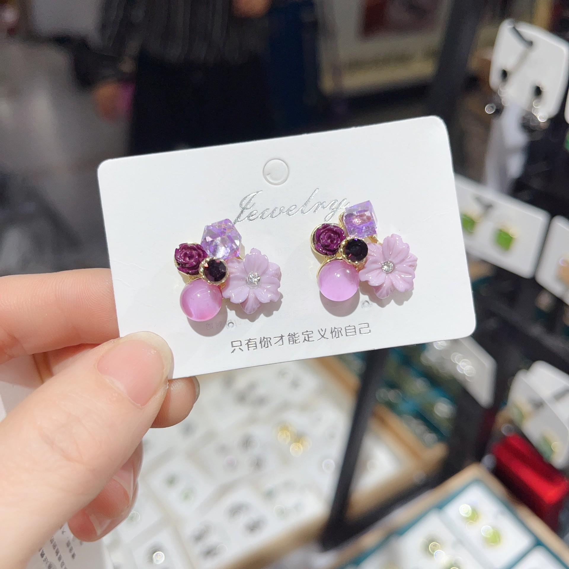 Aretes Cristal Super Hada Estilo Coreano Irregulares Aretes de Flores Aretes Personalizados Temperamento Nicho Elegante Retro