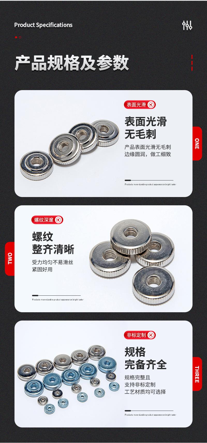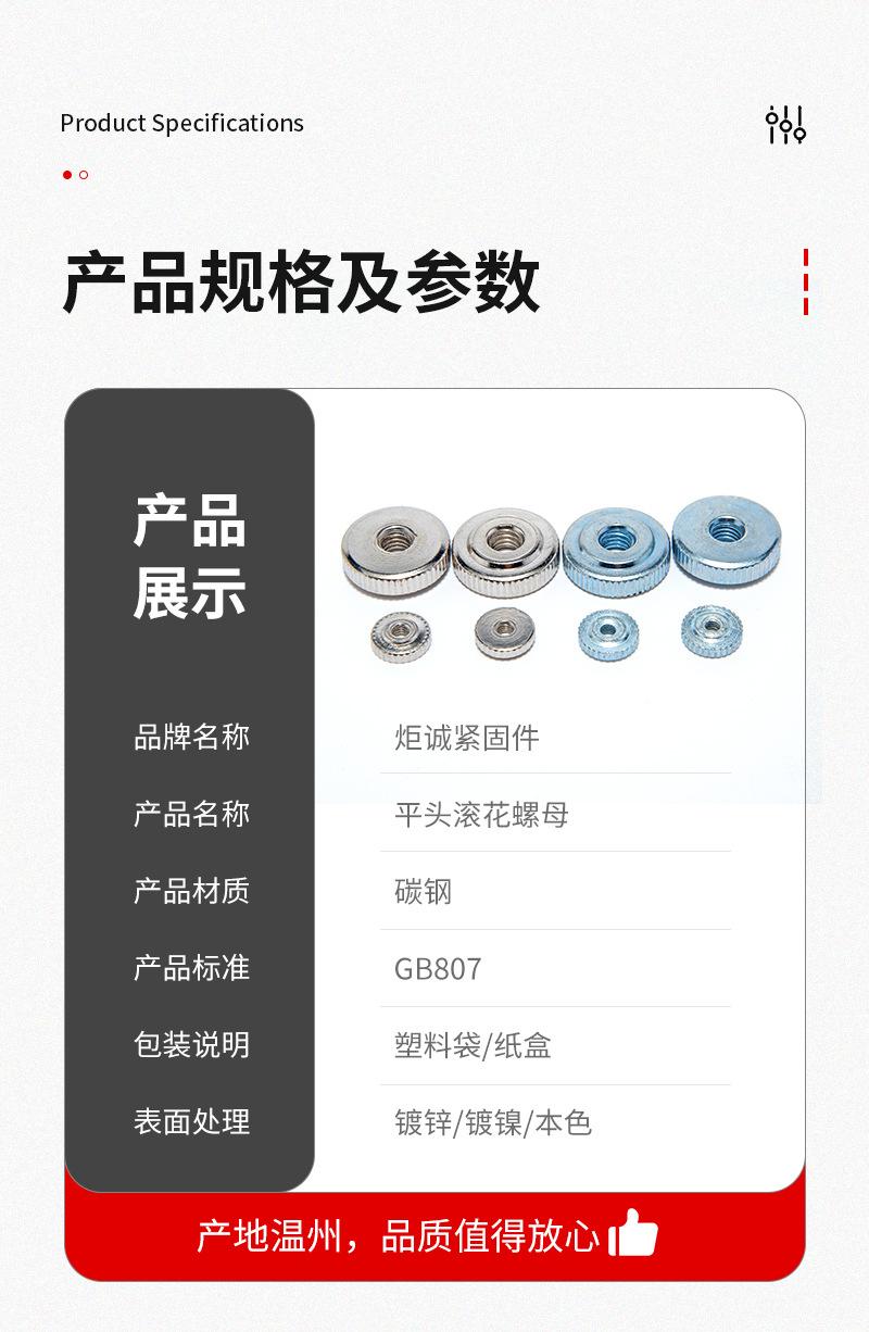 GB807 Acero al Carbono Galvanizado Una Capa Accesorios de Ajuste Tuerca Moleteada Tuerca de Mano Cabeza Plana Moleteada Vertical Tuerca Redonda