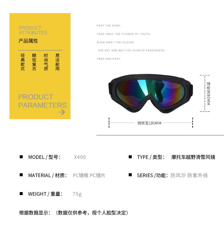 Montura de color nuevo x400 gafas de esquí gafas de motocicleta gafas para montar para hombres y mujeres a prueba de viento adulto para niños