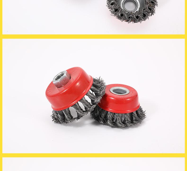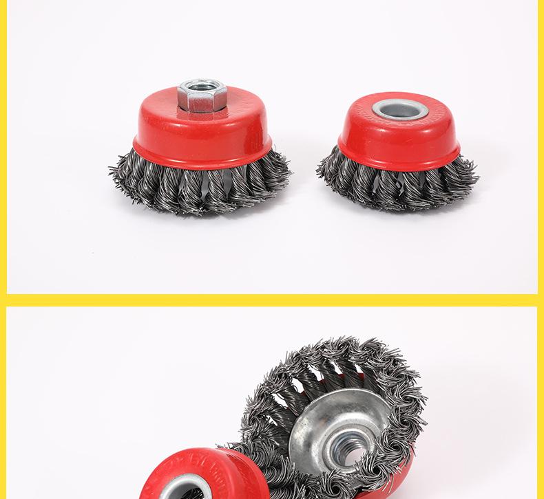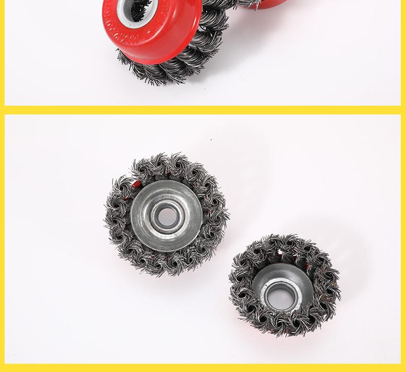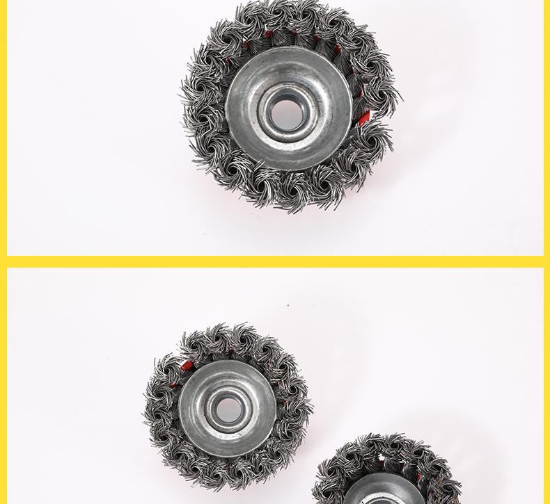 Amoladora angular de metal con rueda de alambre en forma de cuenco, desoxidante, pulidora, cepillo de alambre, pulido de acero engrosado, venta directa de fábrica