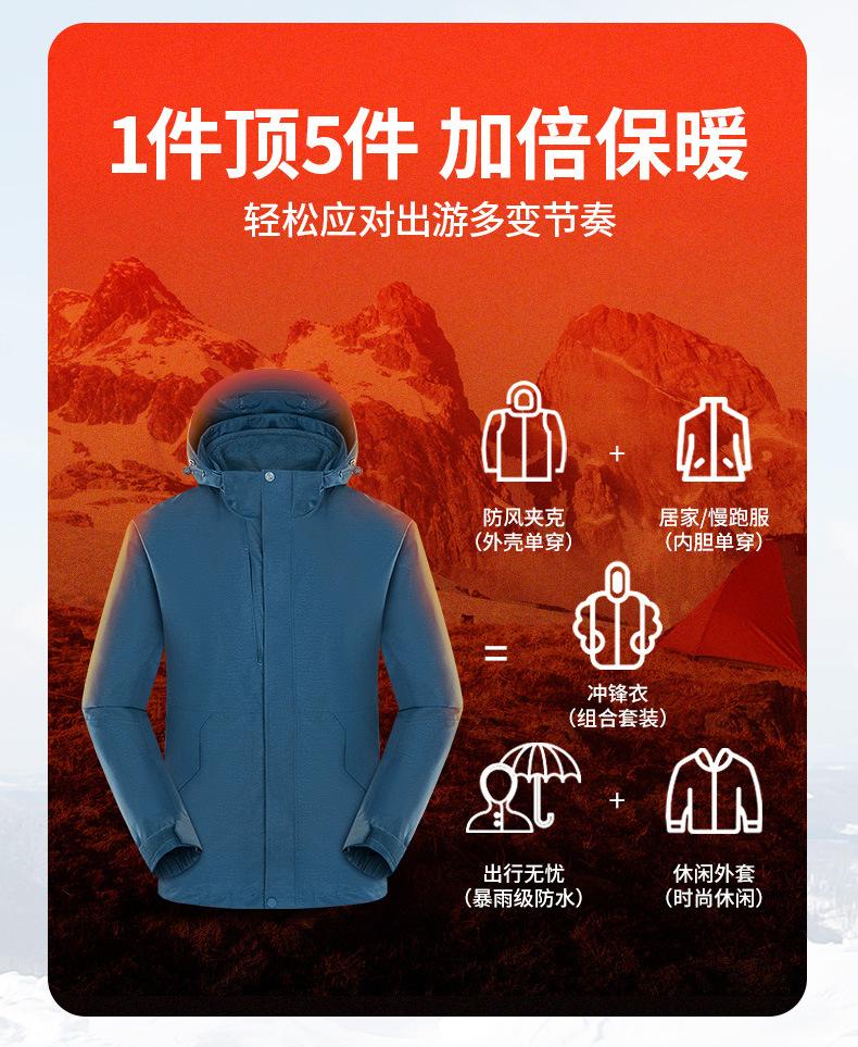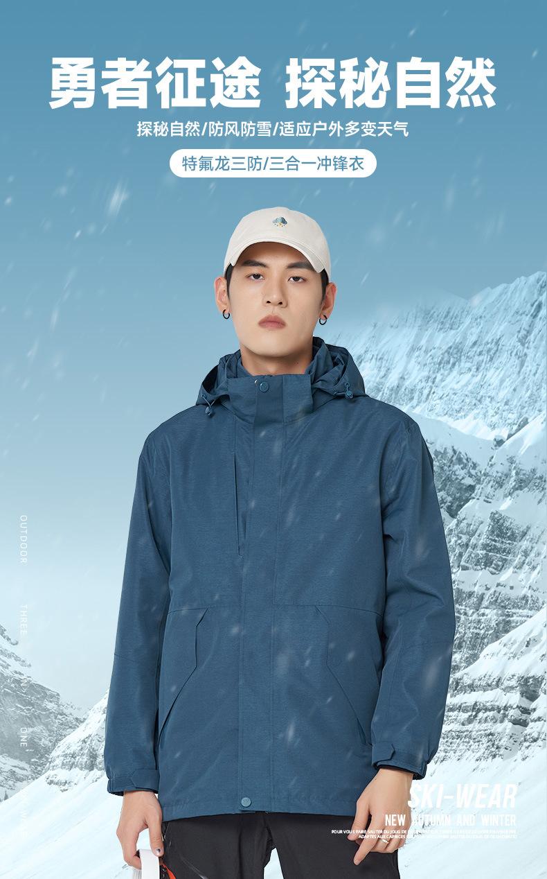 Chaqueta para exteriores tres en uno desmontable de dos piezas cortavientos Impermeable cálida para montañismo traje de esquí al por mayor