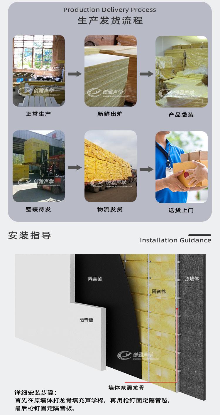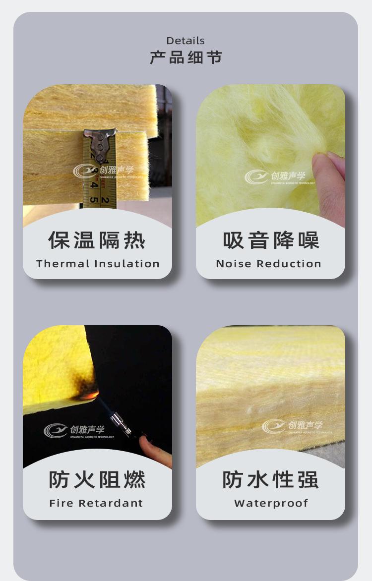 Algodón Insonorizante Algodón Insonorizante de Vidrio Tablero Algodón Insonorizante Pared Ktv Estadio Absorbente de Sonido Ambientalmente Amigable Algodón de Vidrio Centrifugado Aislamiento de Techo