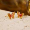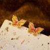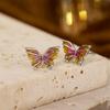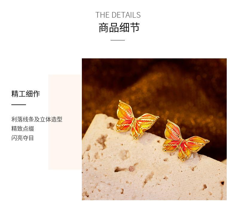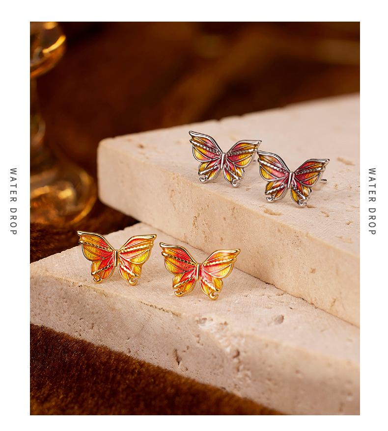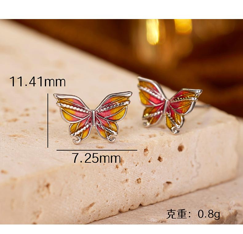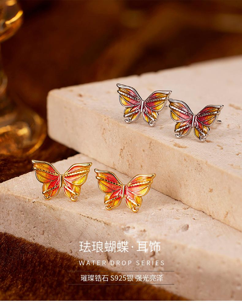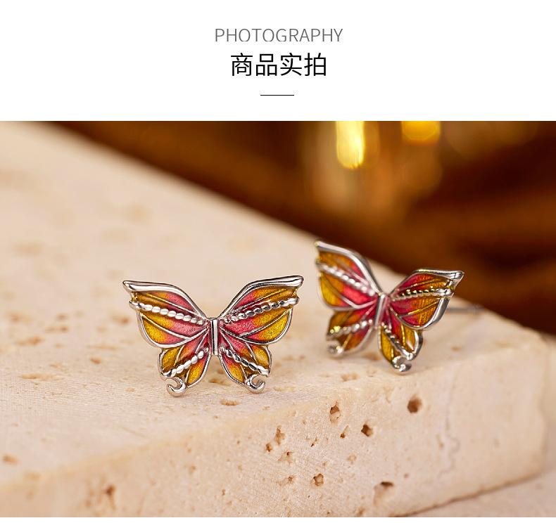 Pendientes de plata S925 con diseño de mariposa azul quemado, con pegamento, para mujer, estilo nacional, pendientes sencillos de temperamento, joyería de verano al por mayor.