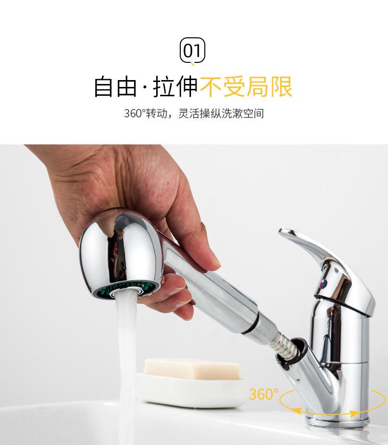 Grifo de lavabo de cobre extraíble, grifo multifuncional extensible para agua caliente y fría, venta al por mayor de fábrica