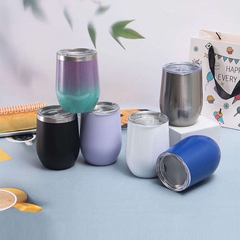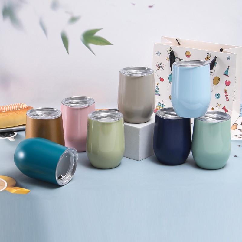 Vaso creativo de acero inoxidable 304 al vacío en forma de cáscara de huevo en U 12oz vaso para vino tinto termo de doble capa para cerveza venta al por mayor de fábrica