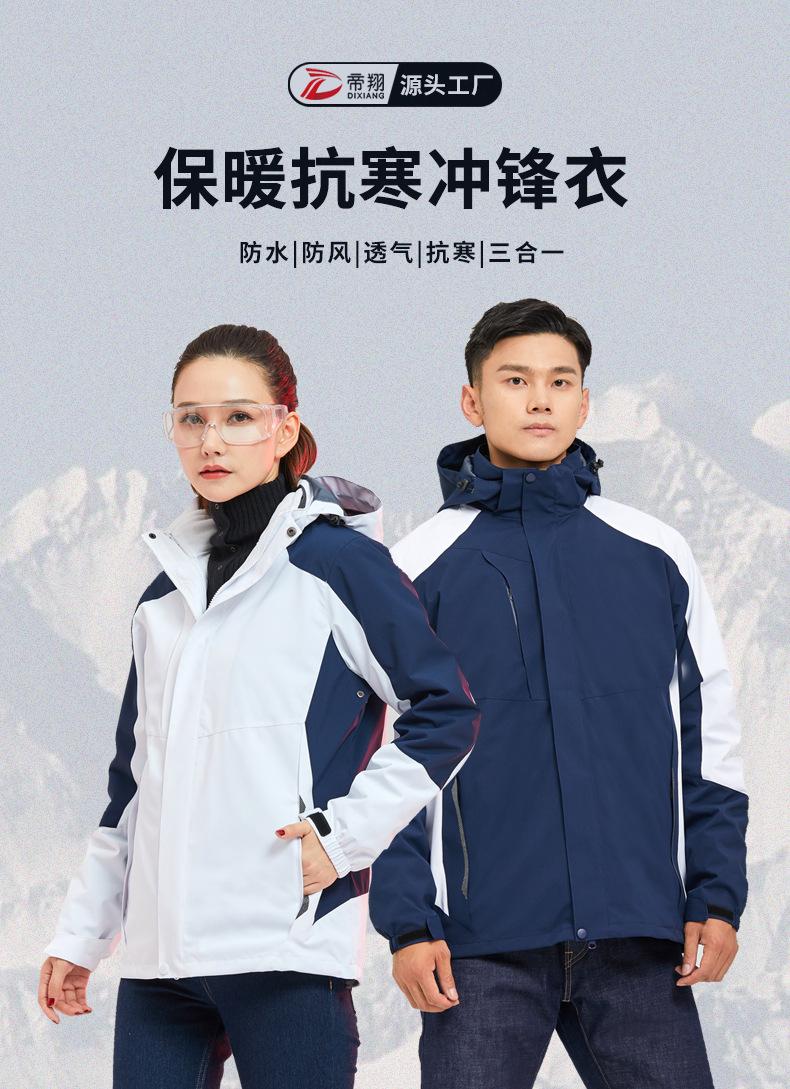 Chaqueta Impermeable para Exterior Tres en Uno Ropa de Trabajo para Hombres y Mujeres, Abrigo Cálido Engrosado Conjunto de Dos Piezas con Capucha para Senderismo