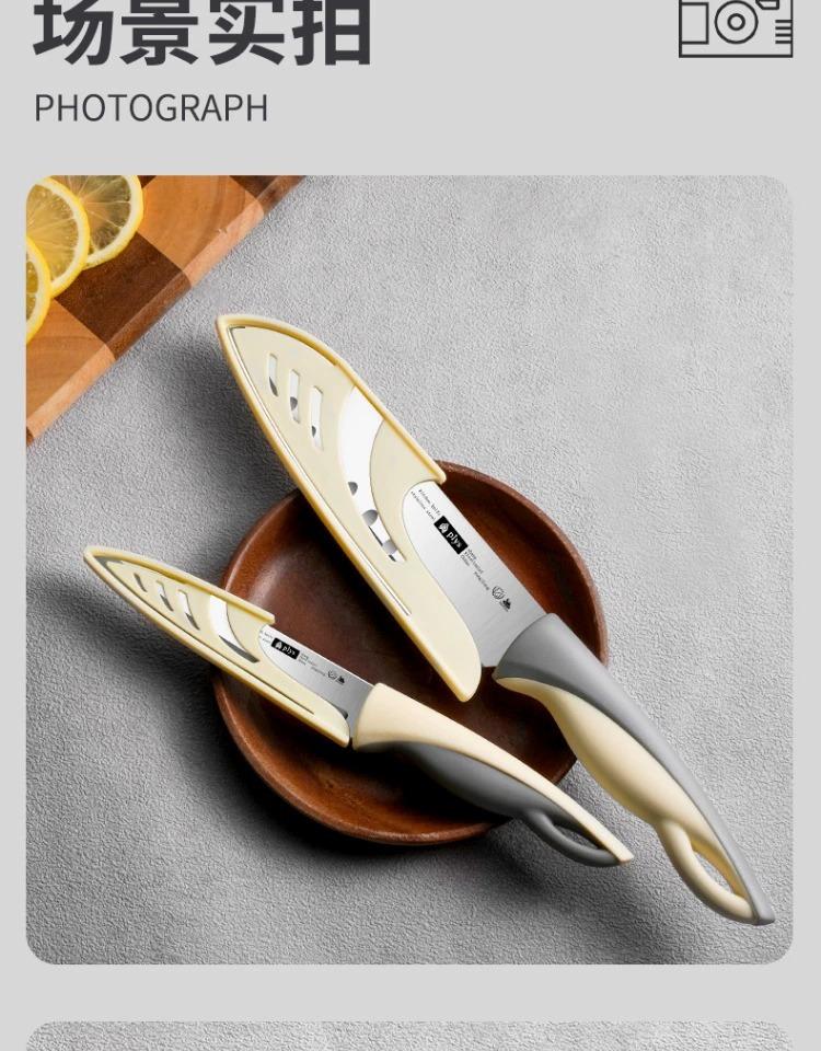 Milk gray fruit knife (with knife cover), Milk gray chef knife (with knife cover), [With Knife cover] milk Gra...