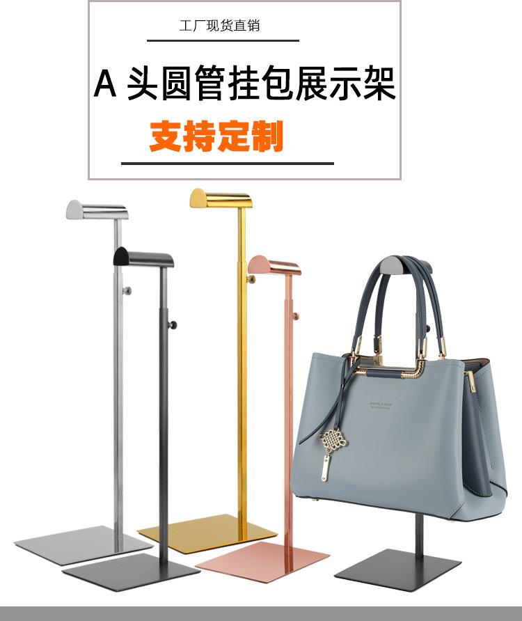 Nuevo estante de exhibición de bolsos ajustable, exhibidor de bolsos para tienda, accesorios de exhibición, centro comercial, estante para bolsos de acero inoxidable