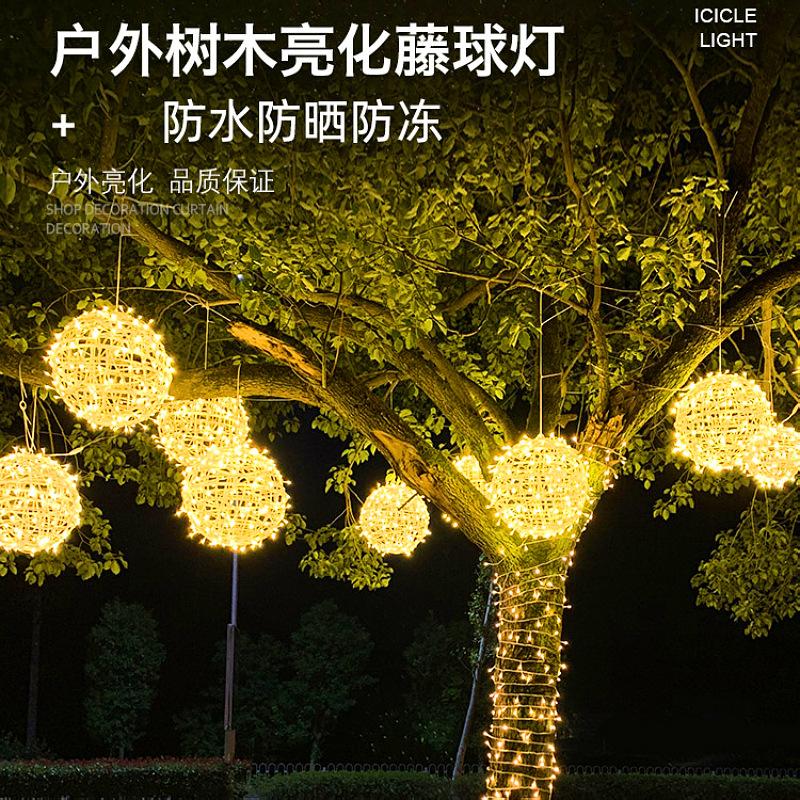Luces LED Colgantes para Árbol Exterior Impermeables Alumbrado Público Luces Decorativas para Festividades Luces de Bola de Pegamento Linternas Nuevas Luces de Bola de Ratán