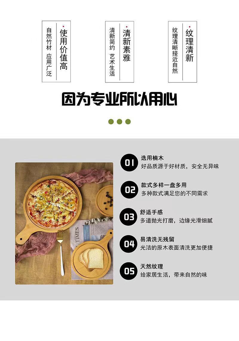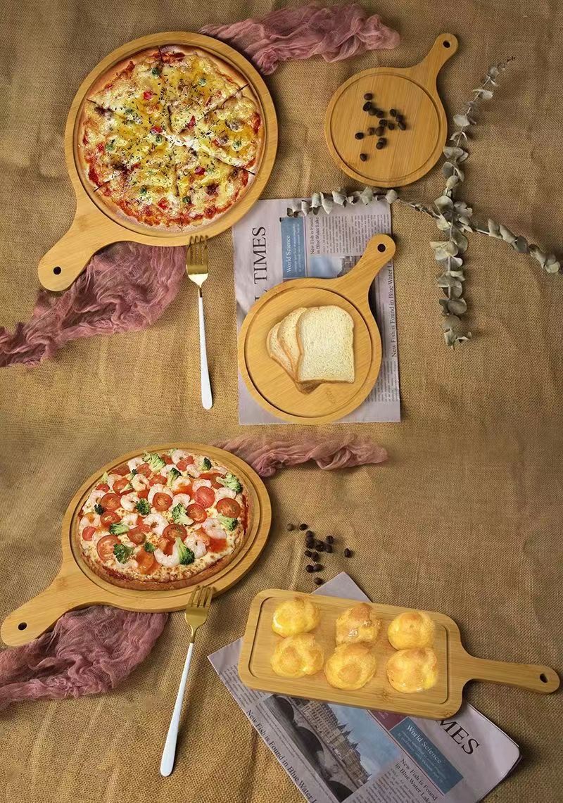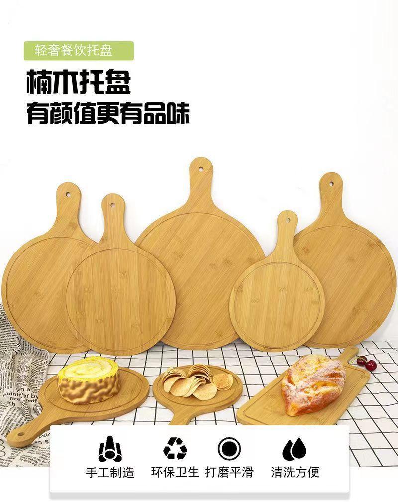 Plato de Pizza de Madera Maciza Bandeja de Madera para Hornear Bistec Hogar Pastel Postre Fruta Plato de Madera Bistec Pan Plato de Madera