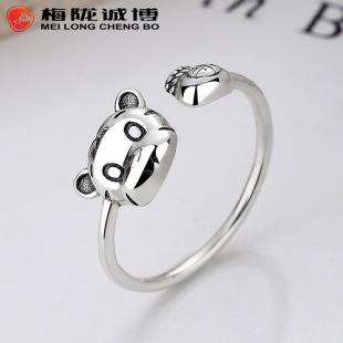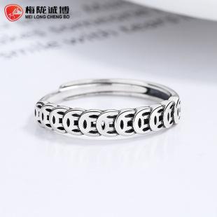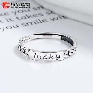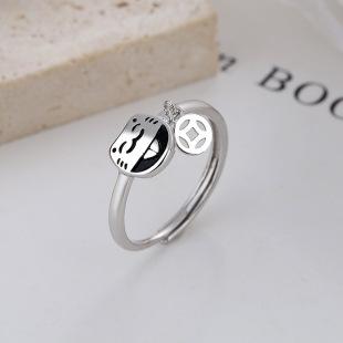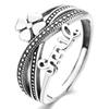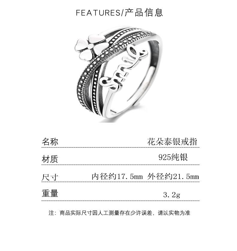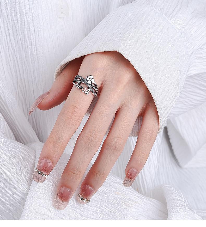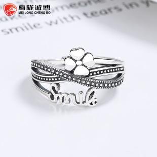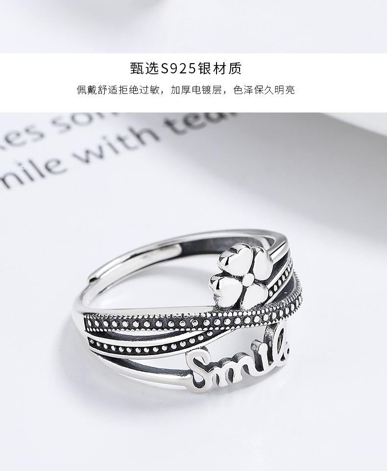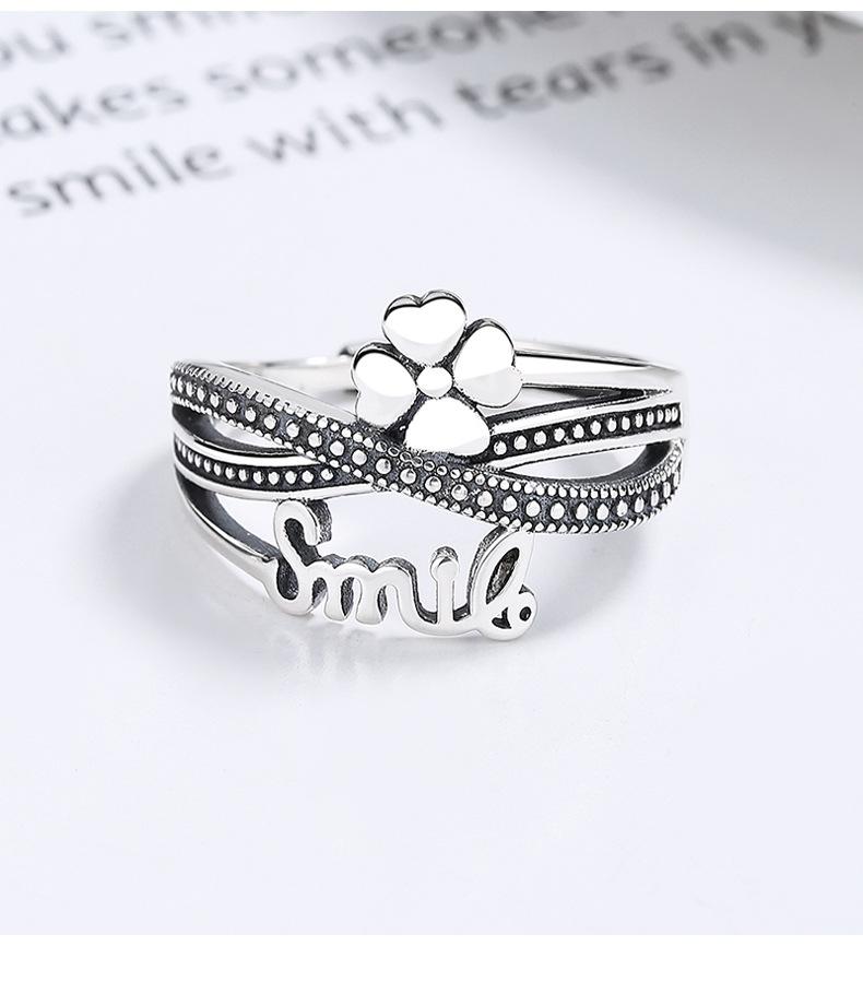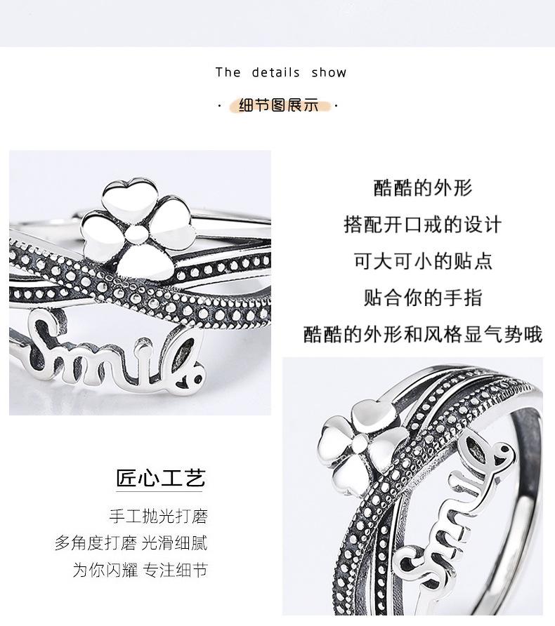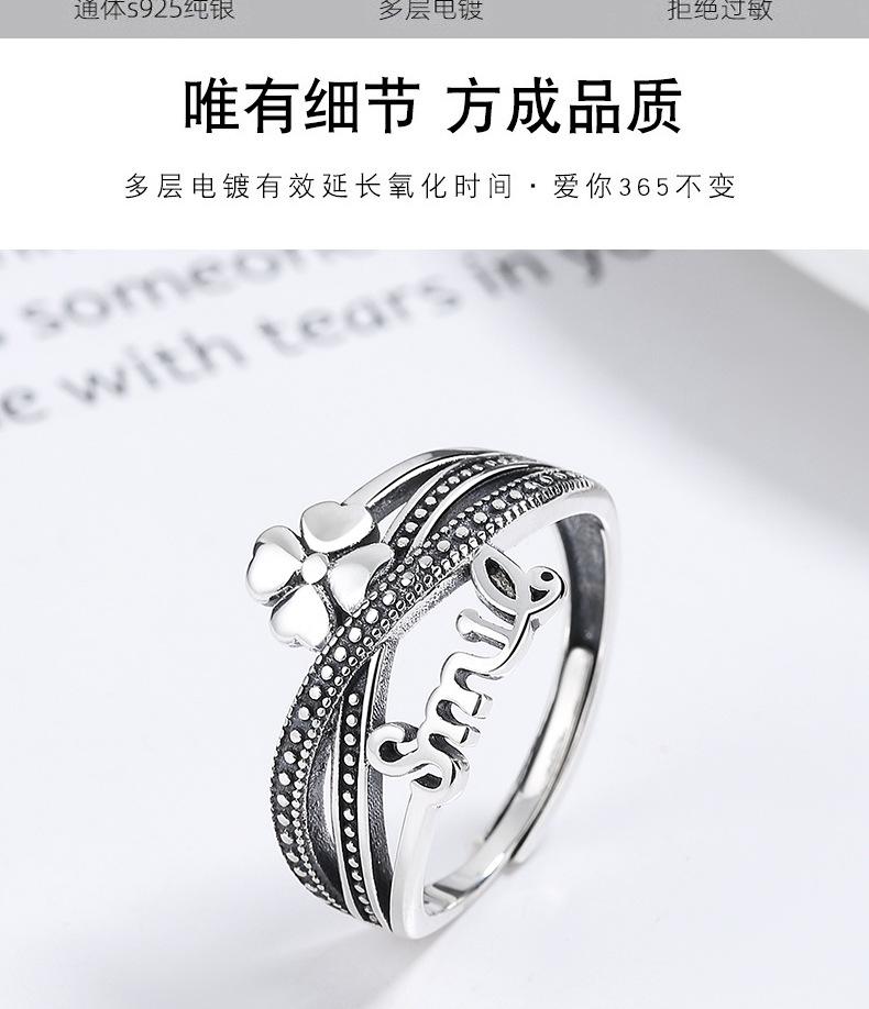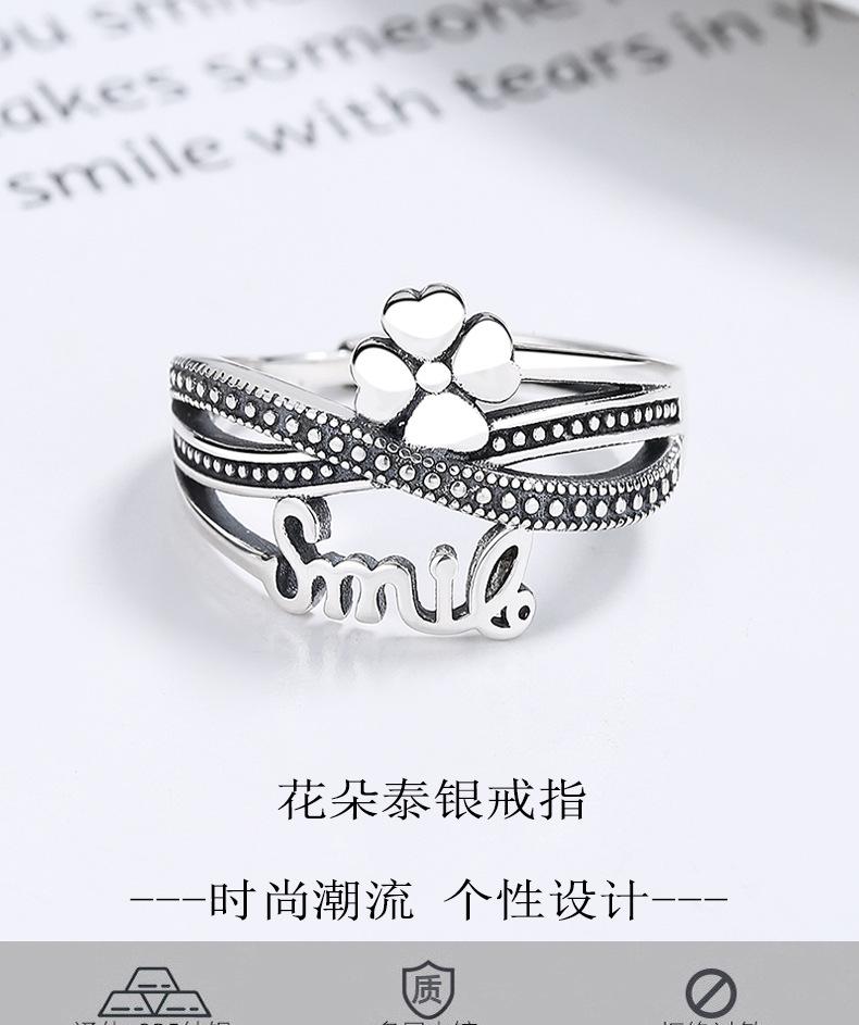 Anillo de plata de ley 925 con forma de trébol tailandés, estilo retro femenino, con diseño de flor desgastada y sonrisa, joyería con personalidad.