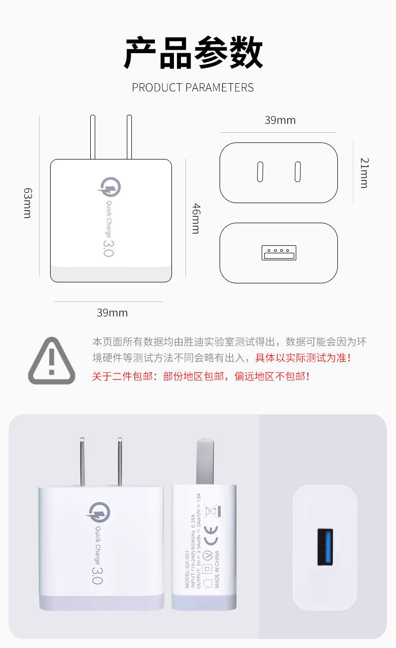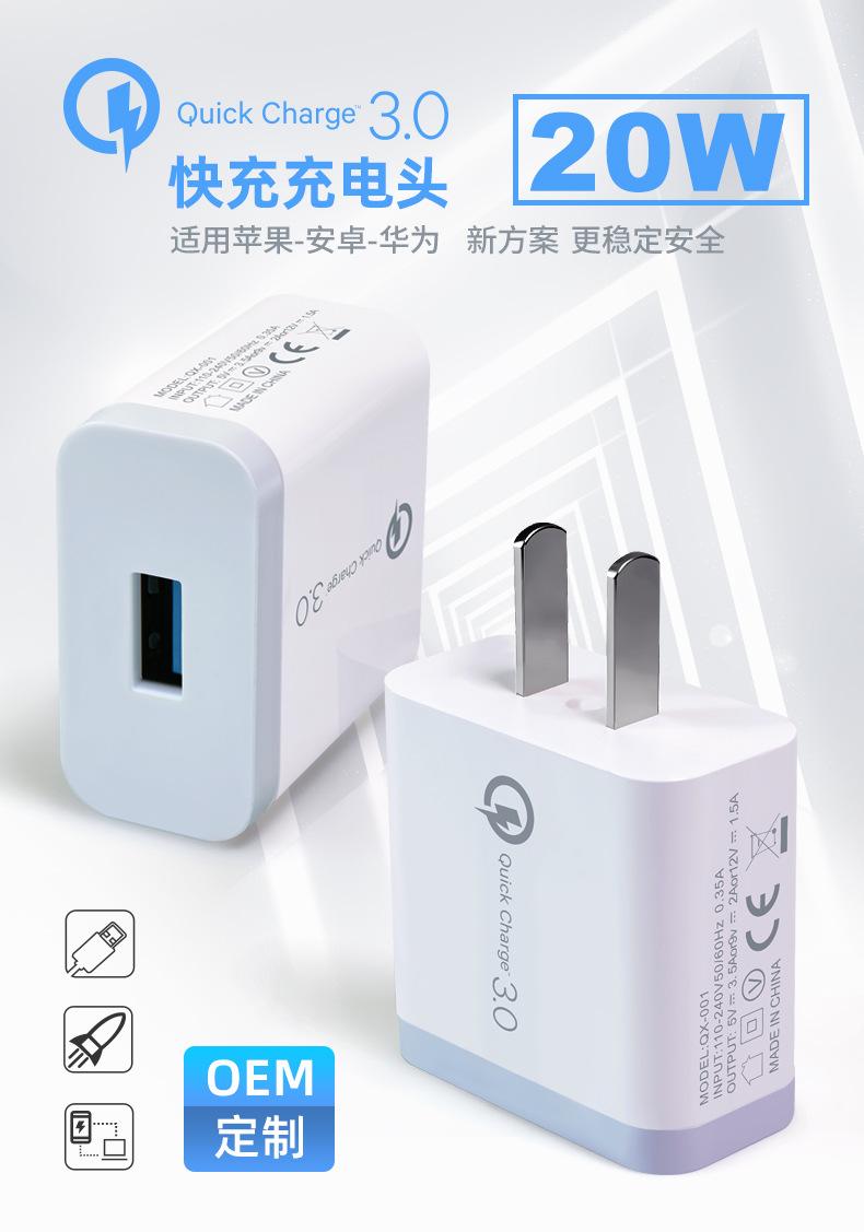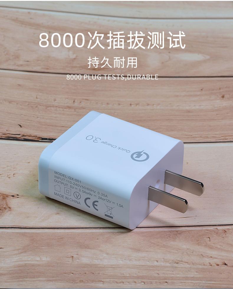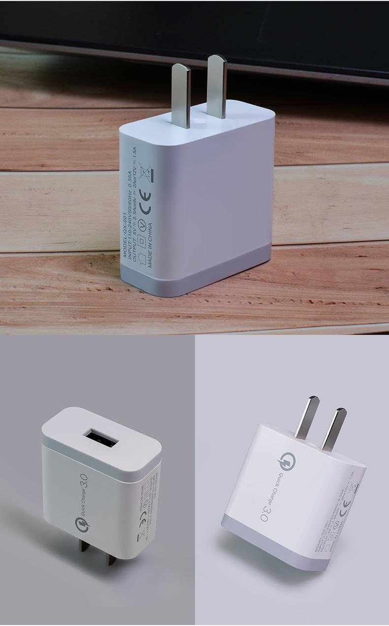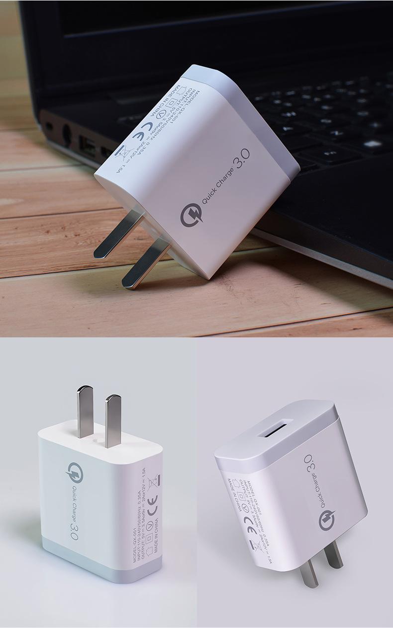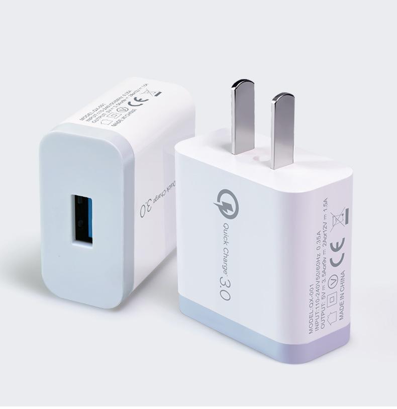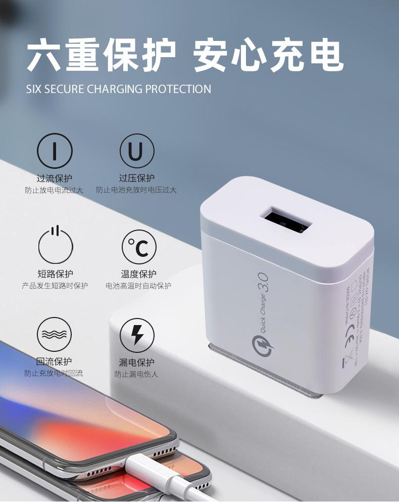 Cargador rápido QC3.0 de 5V3A con cabezal de carga rápida USB para teléfonos móviles y tabletas (15W/18W/20W).