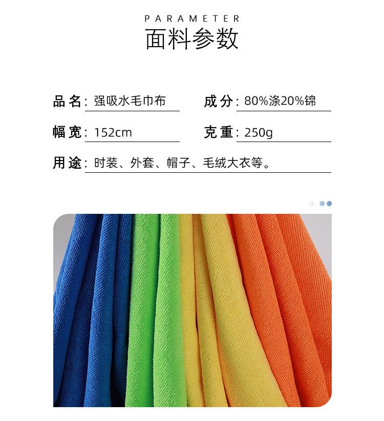 Toalla Absorbente de Tela de Rizo de Microfibra 250g Bata Capucha para Secar el Cabello Tejido de Rizo de Poliéster Brocado de Doble Cara