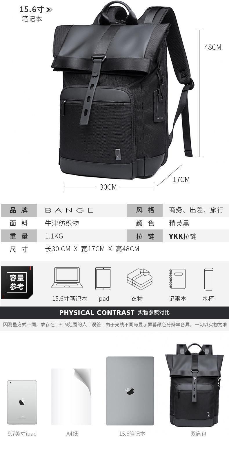 Mochila Bange, mochila de negocios, mochila impermeable para computadora de viaje, mochila de tela Oxford para uso diario.