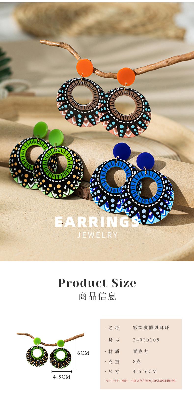 Vacaciones Junto al Mar Pendientes de Aro de Contraste de Color de Color Sainty Diseño Ins para Mujer Pendientes Étnicos Retro de Acrílico