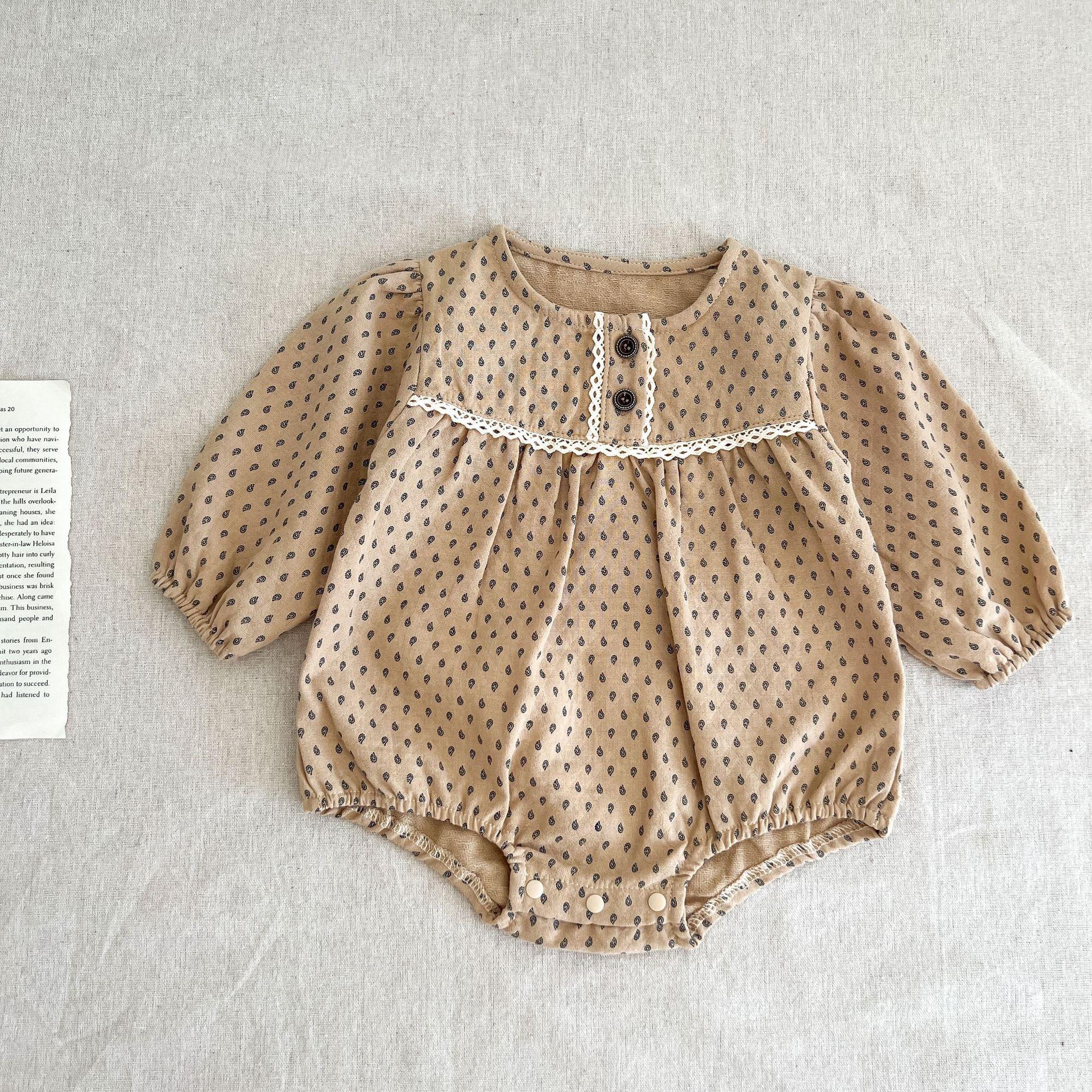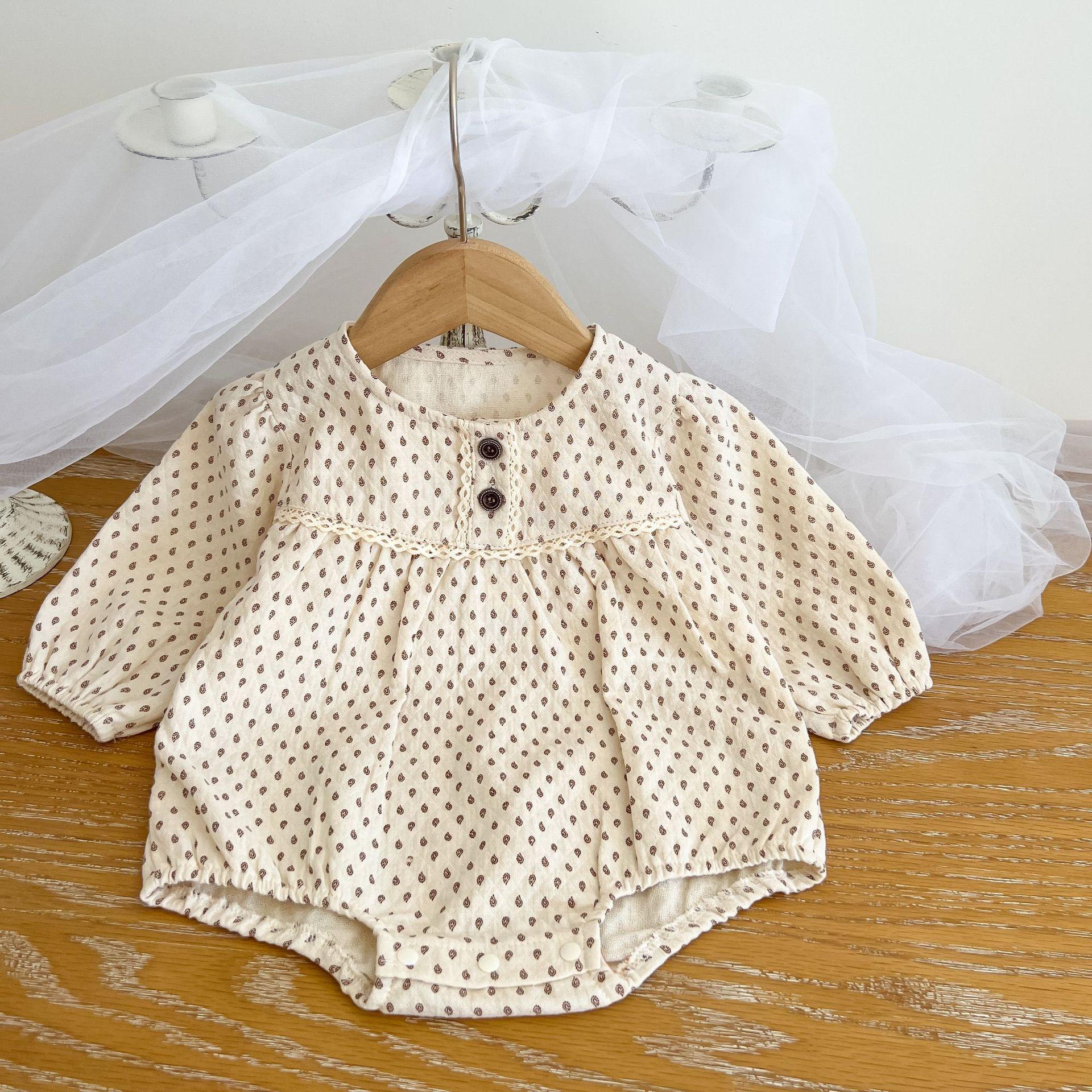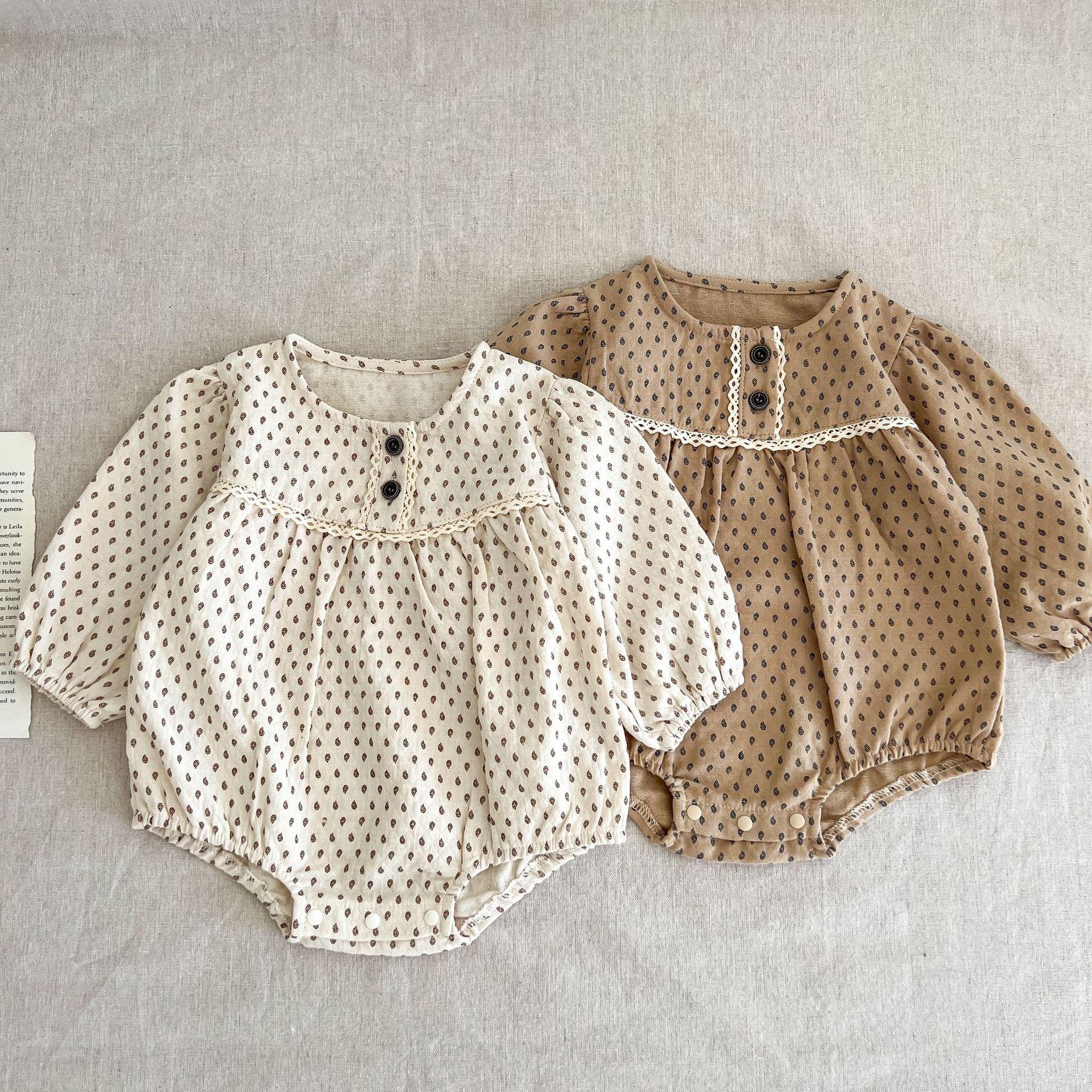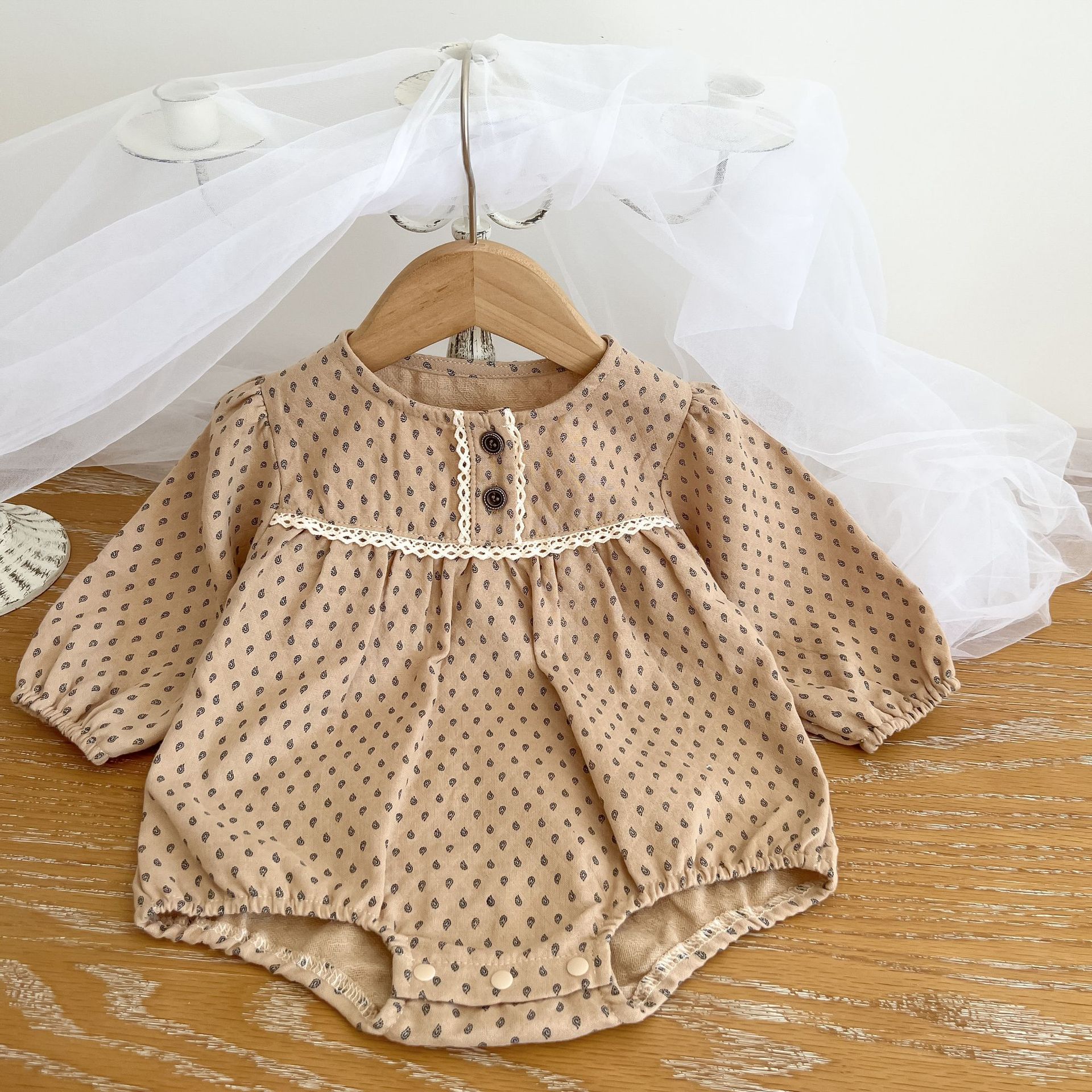 ropa de bebé ins 2022 otoño niña bebé encaje cuello redondo mameluco body recién nacido mono