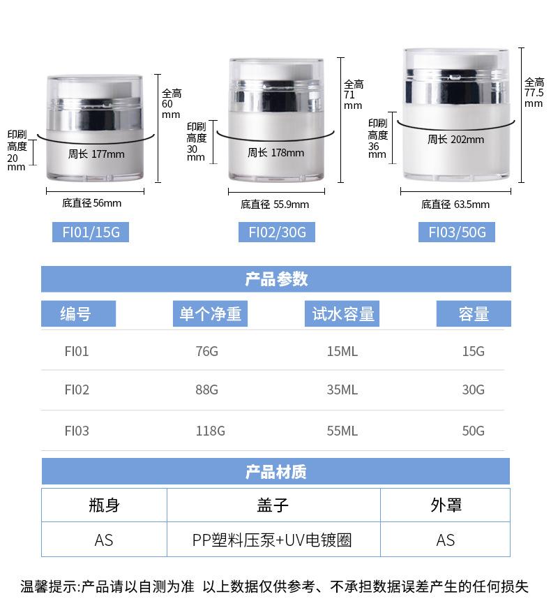 Vacuum bottle * 15g * plastic, Vacuum bottle * 30g * plastic, Vacuum bottle * 50g * plastic