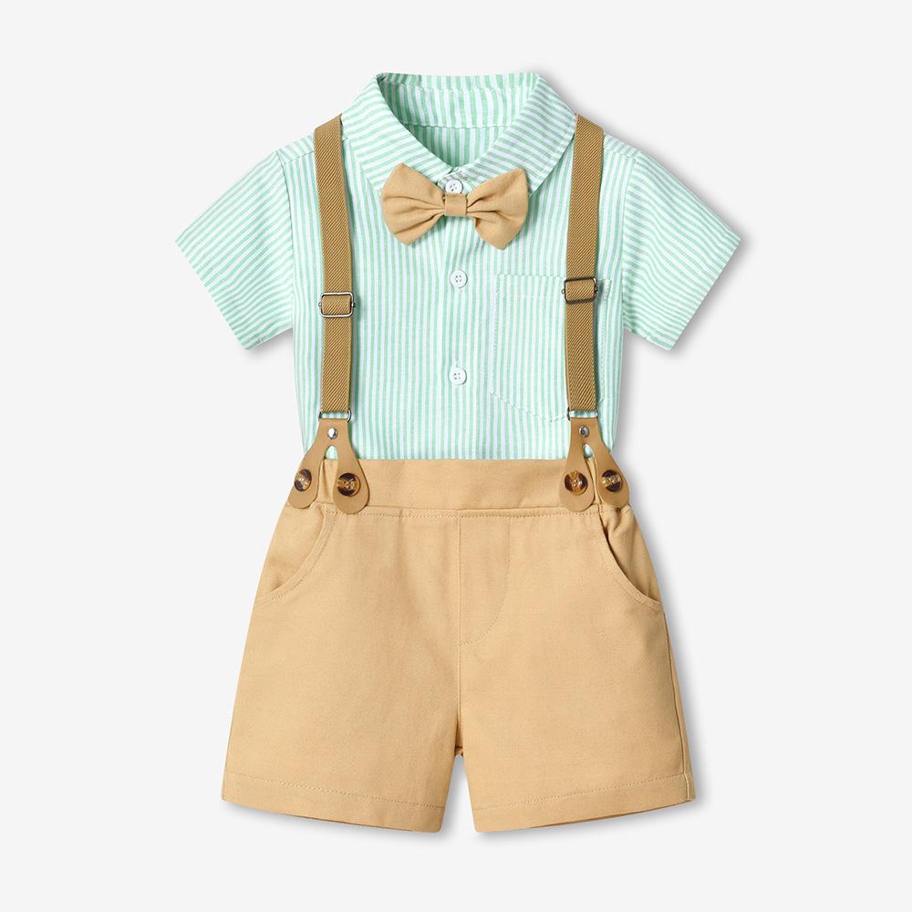 Traje de verano para niños, camisa a rayas de manga corta de algodón, vestido de un año, ropa de verano para niños de comercio exterior