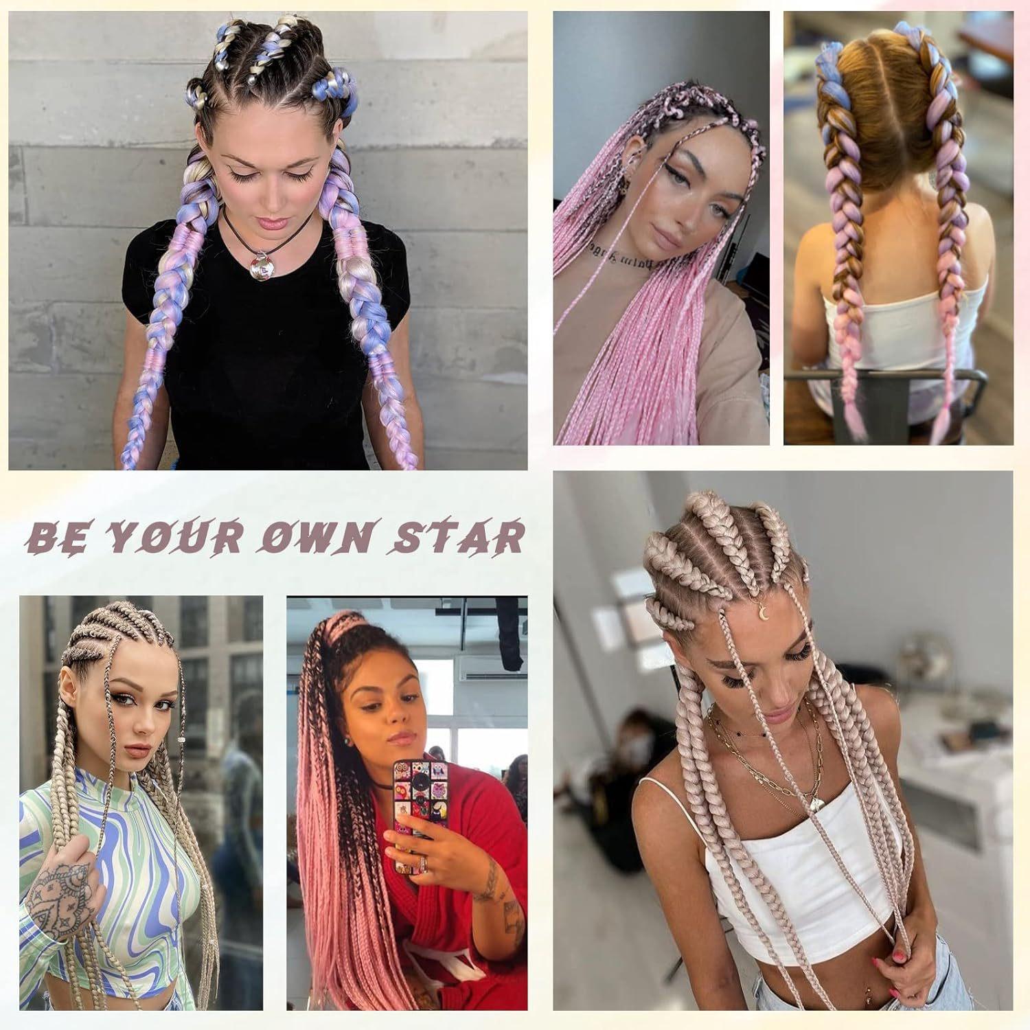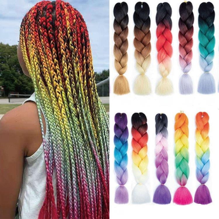 Peluca africana con trenza grande de fibra química de tres colores con degradado de color, trenzado de seda de alta temperatura, trenza jumbo, trenza sucia