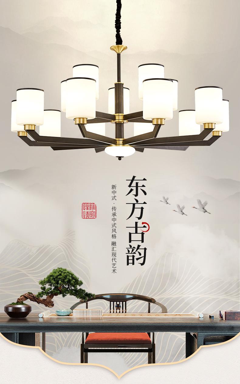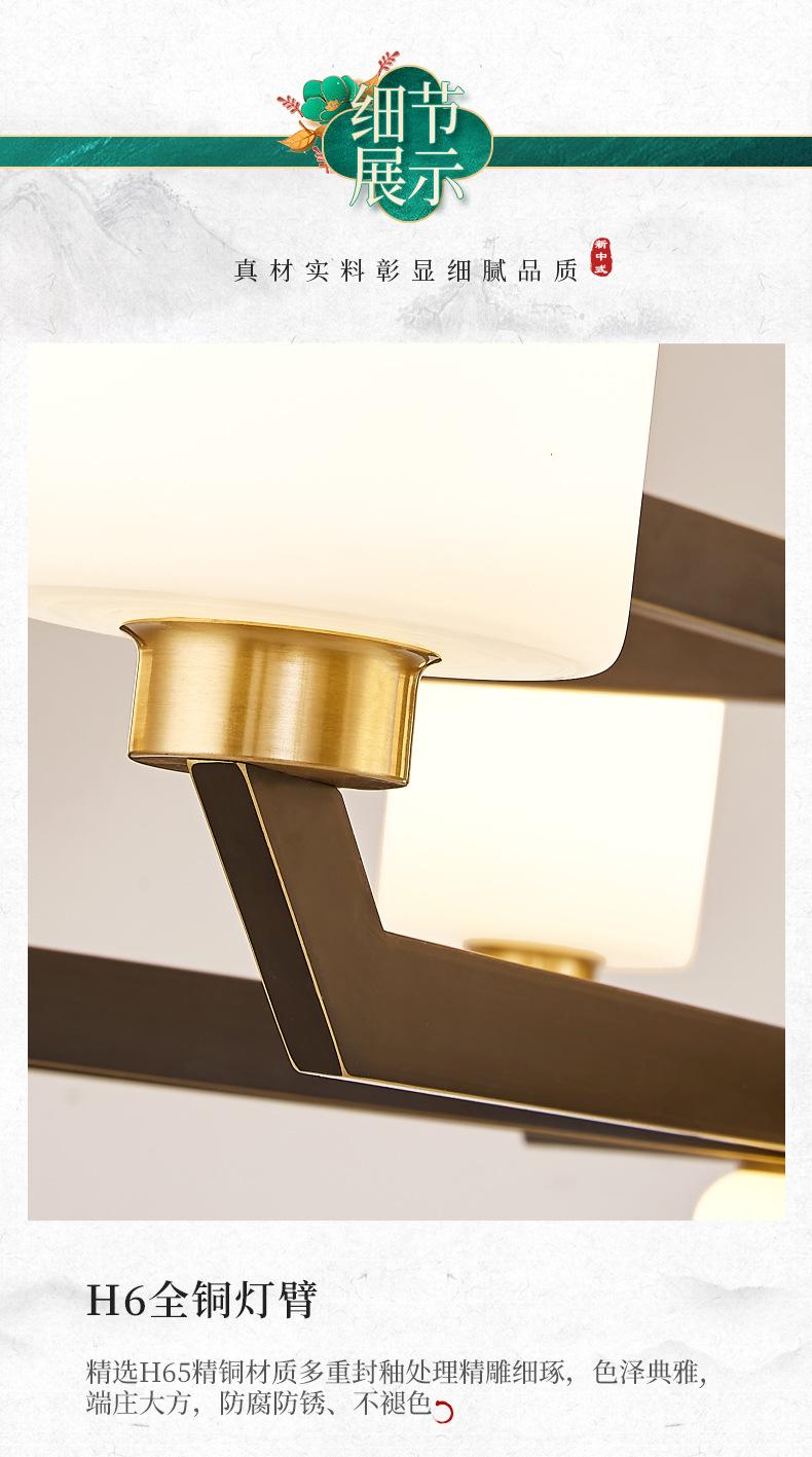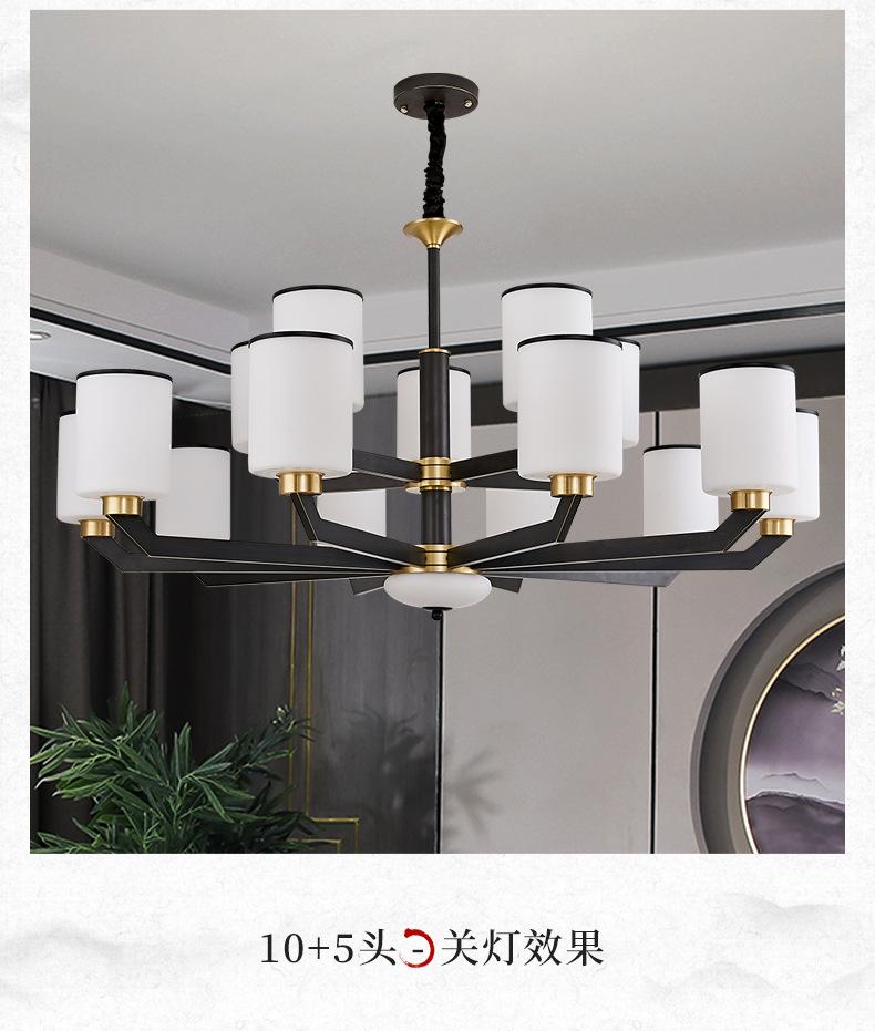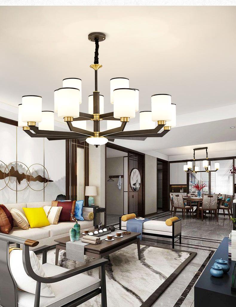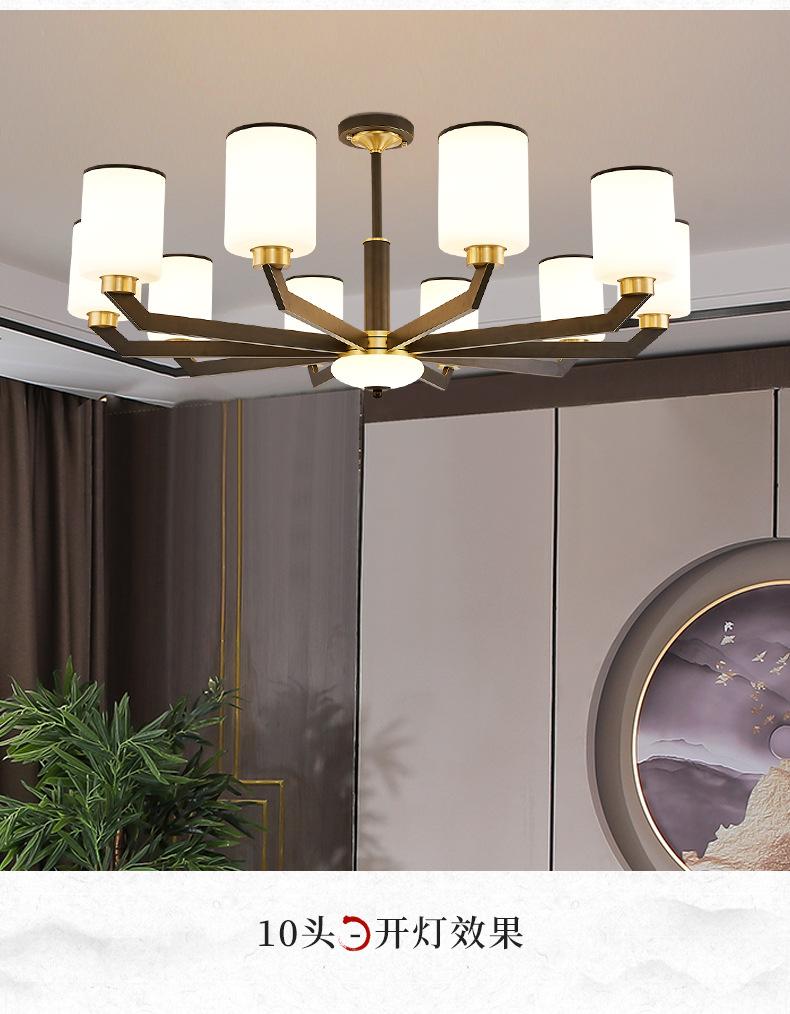 Lámpara de araña de estilo chino completamente de cobre, moderna, minimalista, estilo chino, elegante, para casa, villa, dormitorio, comedor.