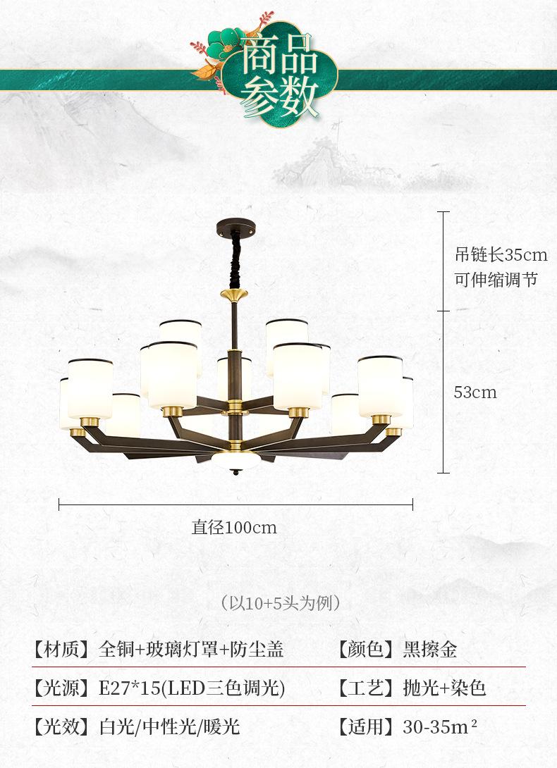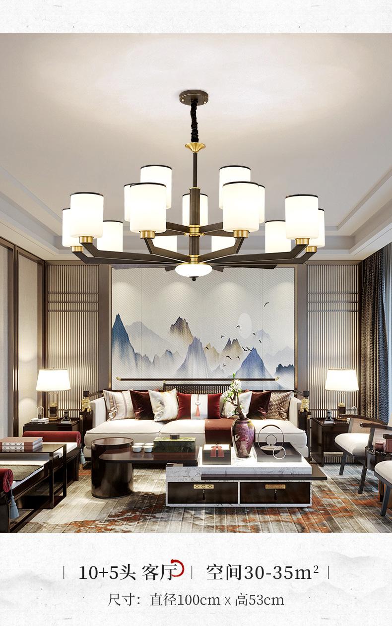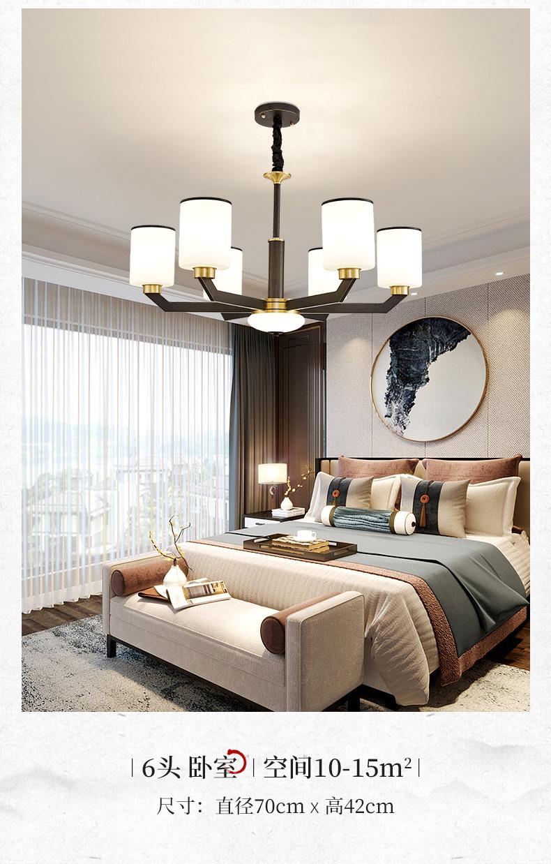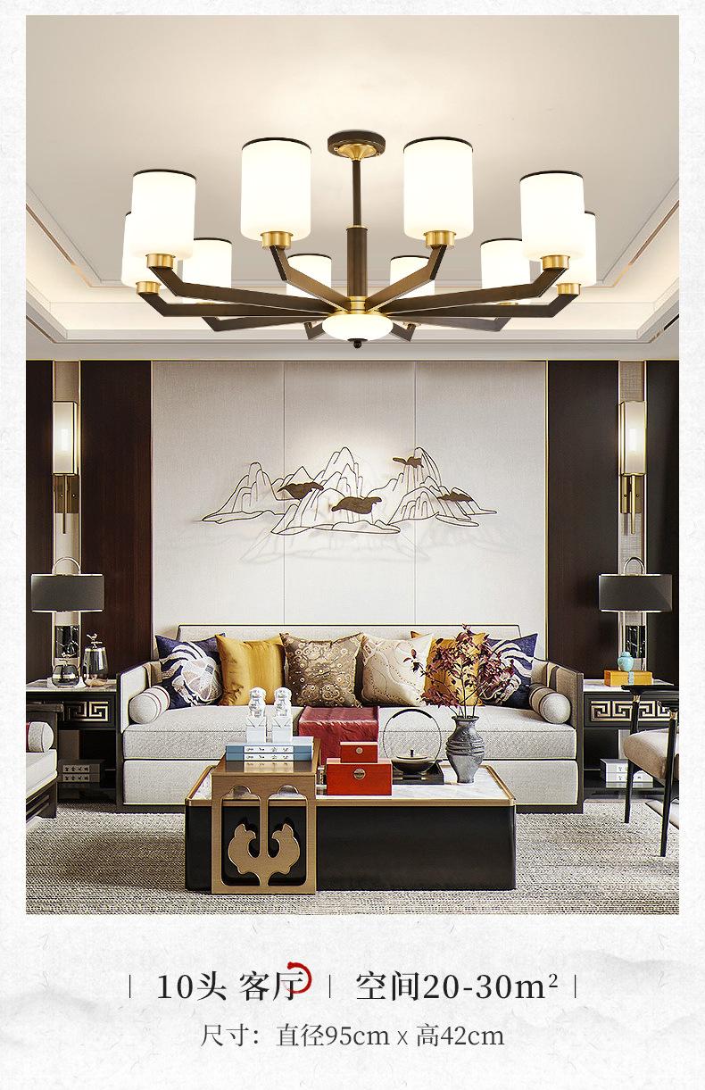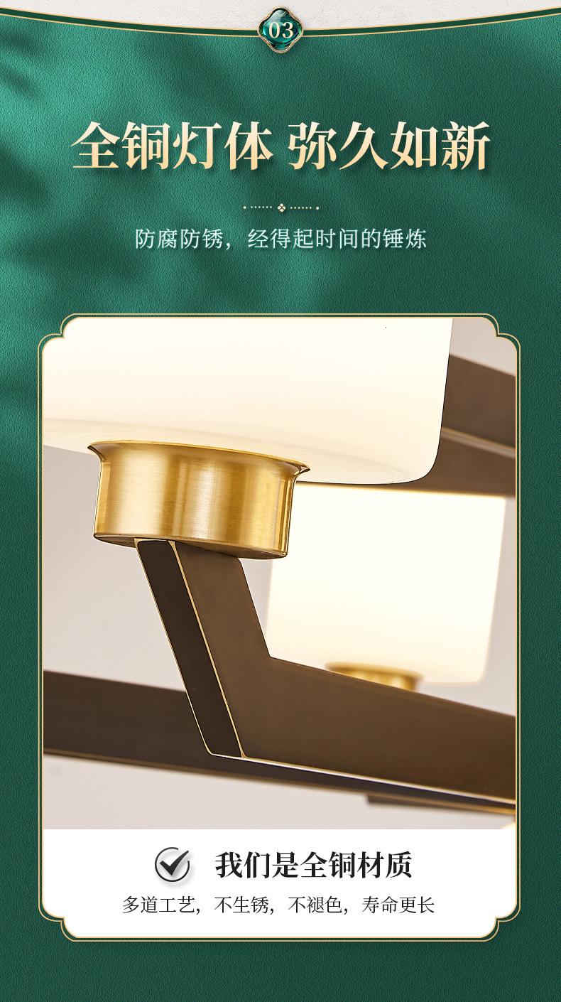 Lámpara de araña de estilo chino completamente de cobre, moderna, minimalista, estilo chino, elegante, para casa, villa, dormitorio, comedor.