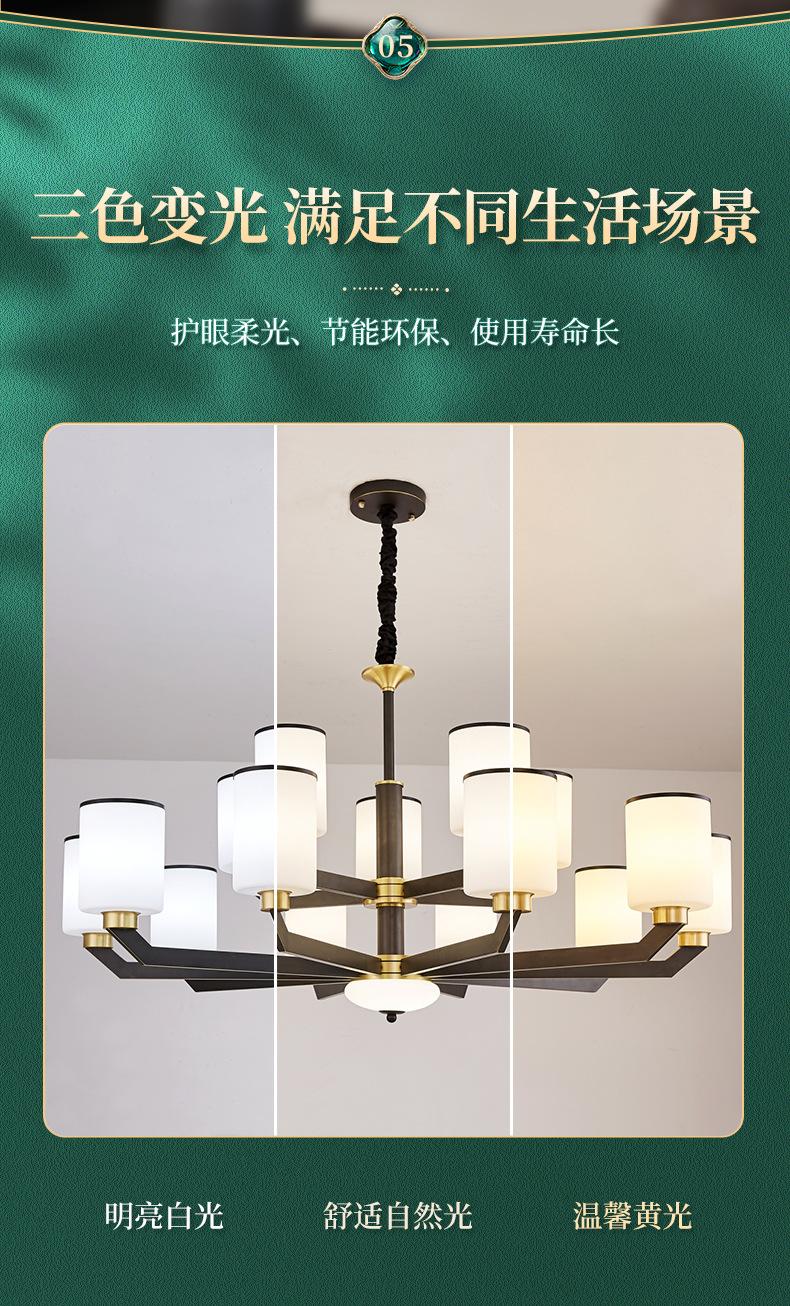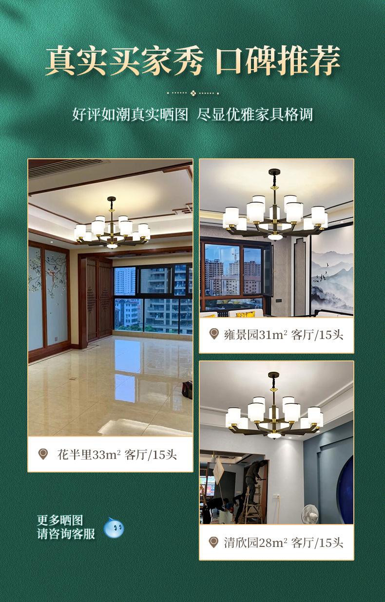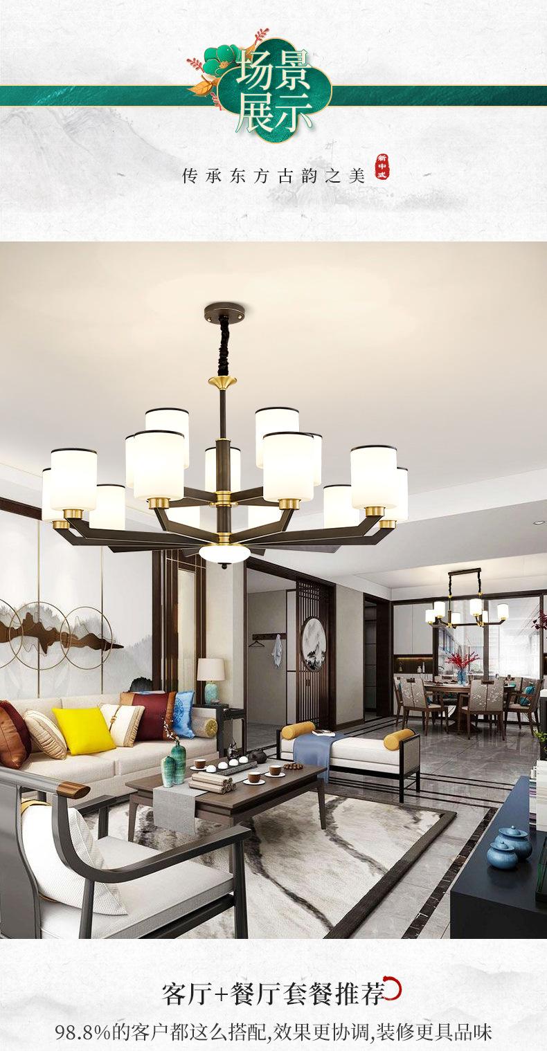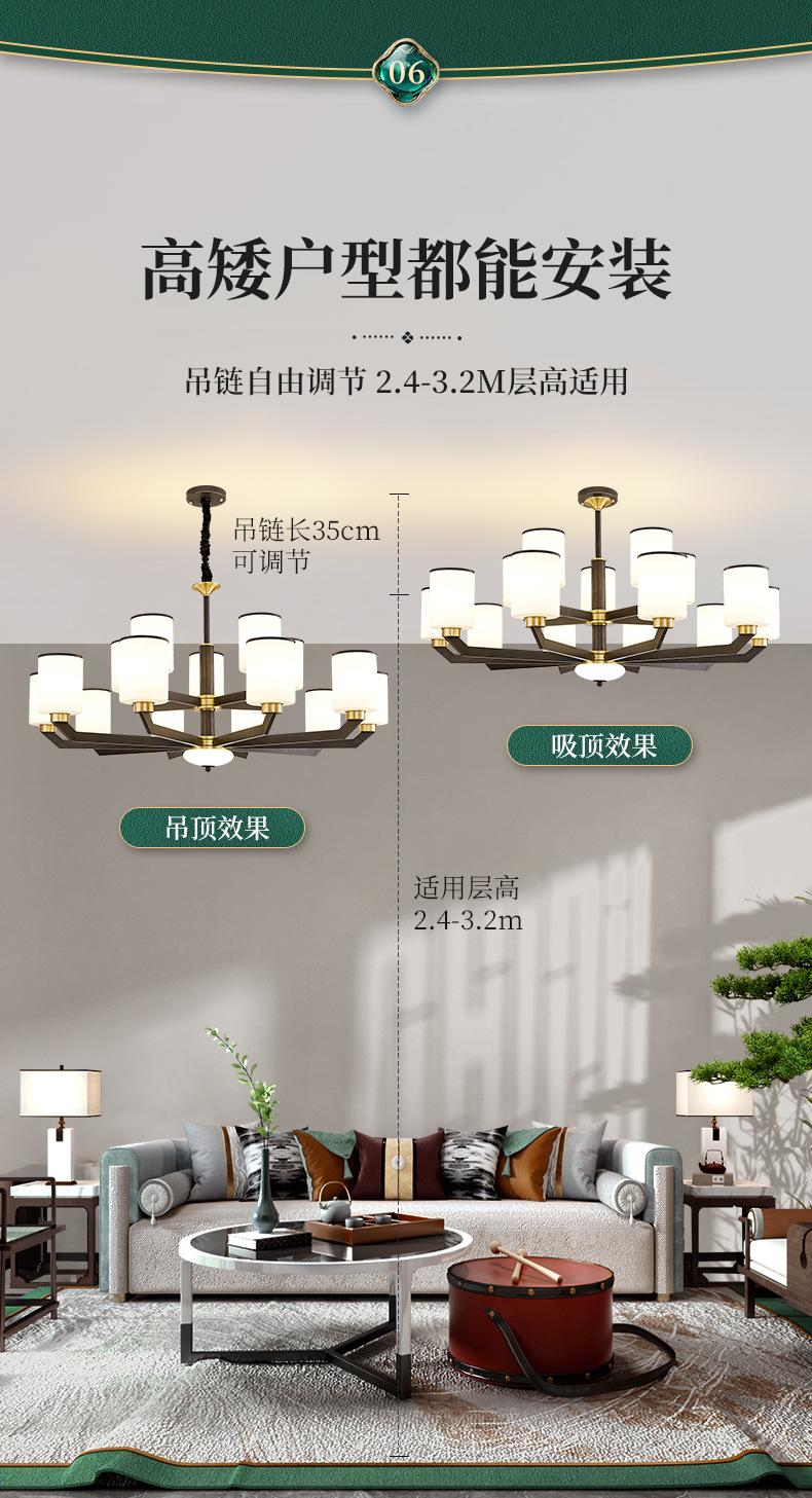 Lámpara de araña de estilo chino completamente de cobre, moderna, minimalista, estilo chino, elegante, para casa, villa, dormitorio, comedor.