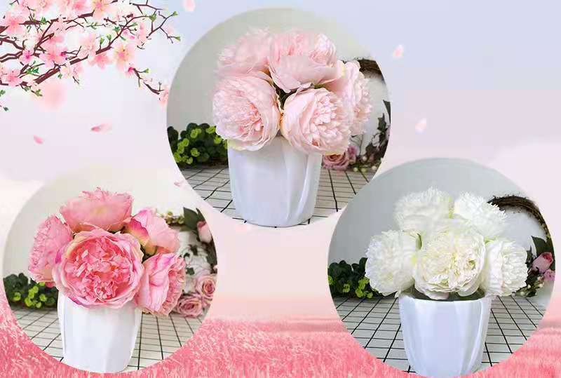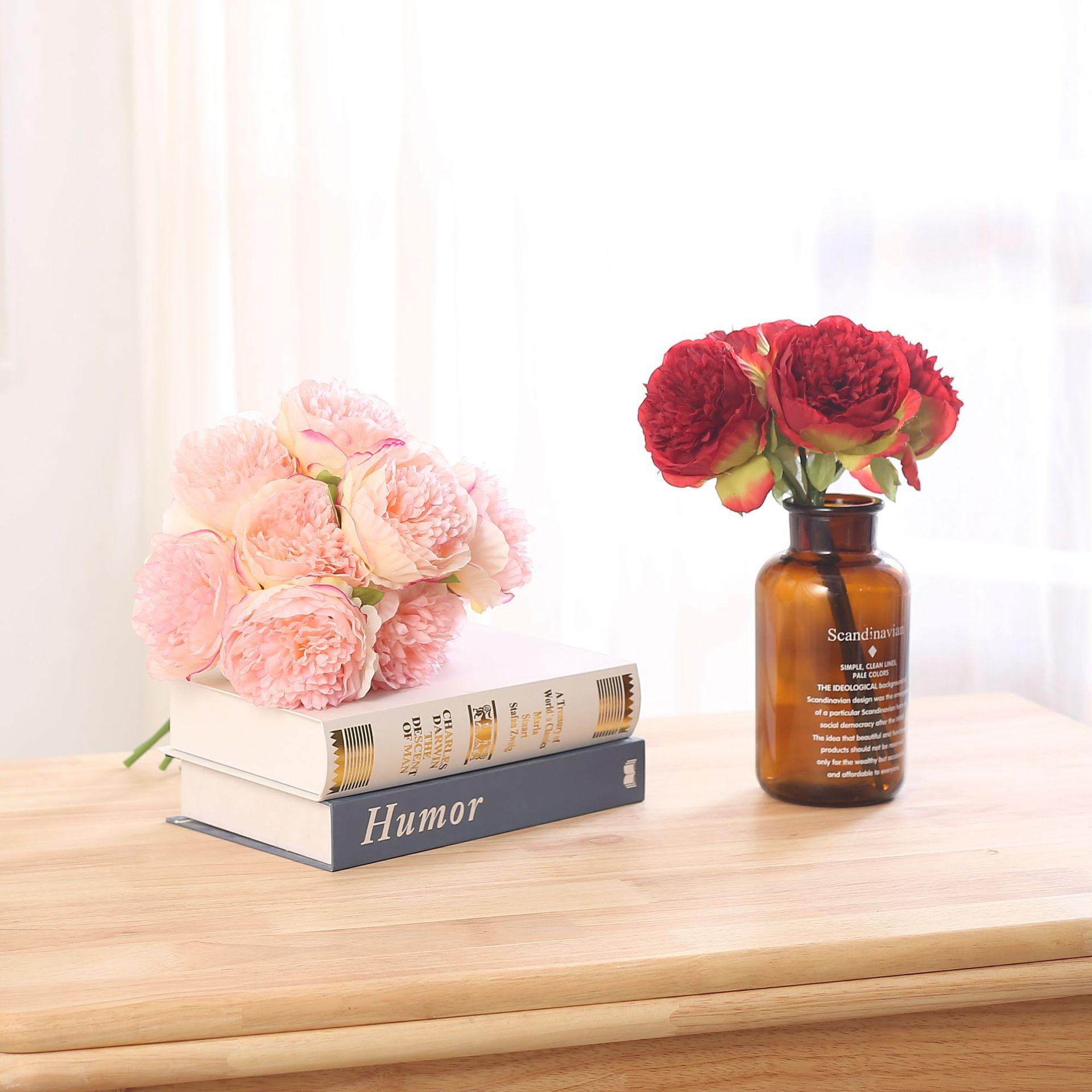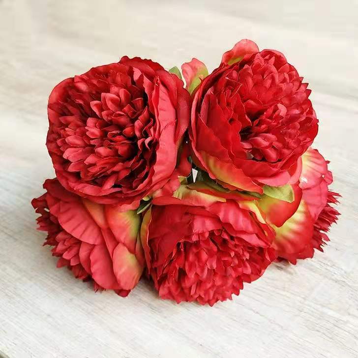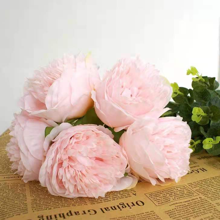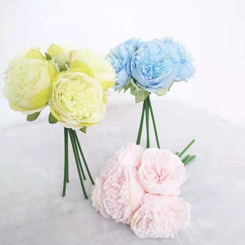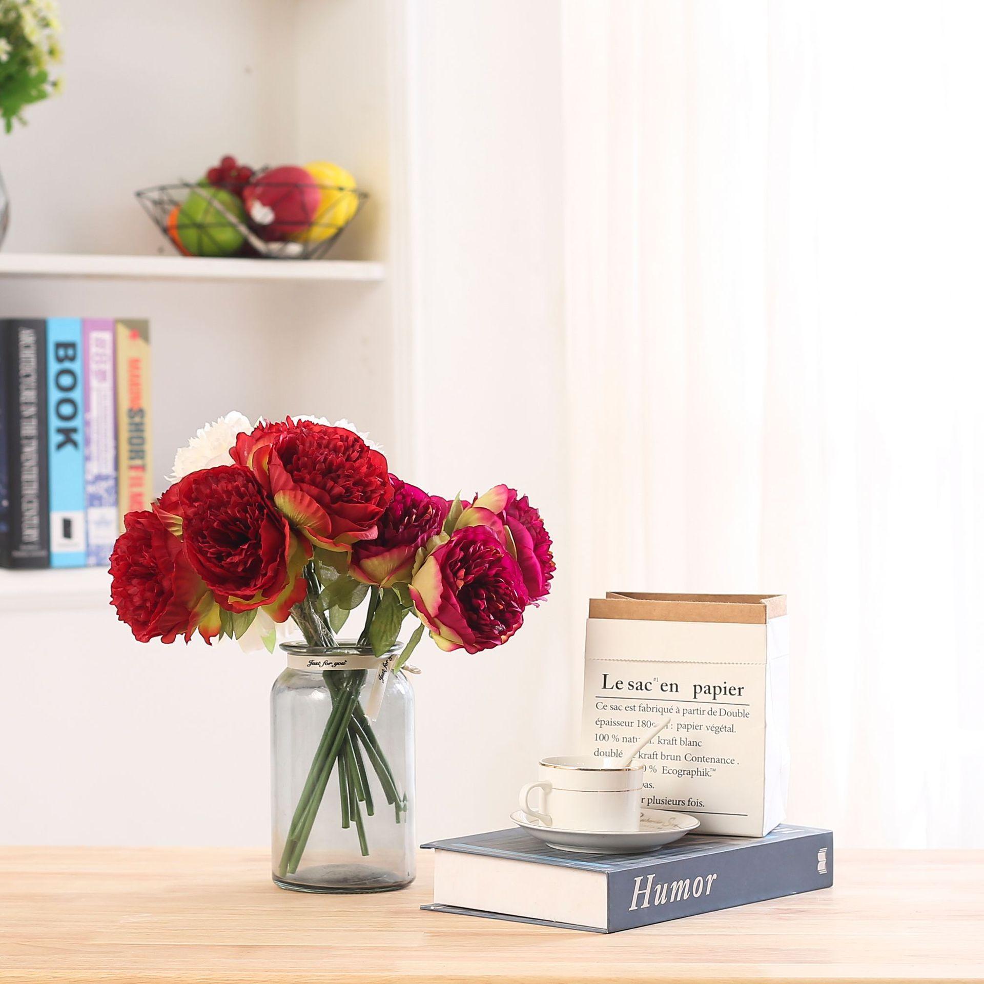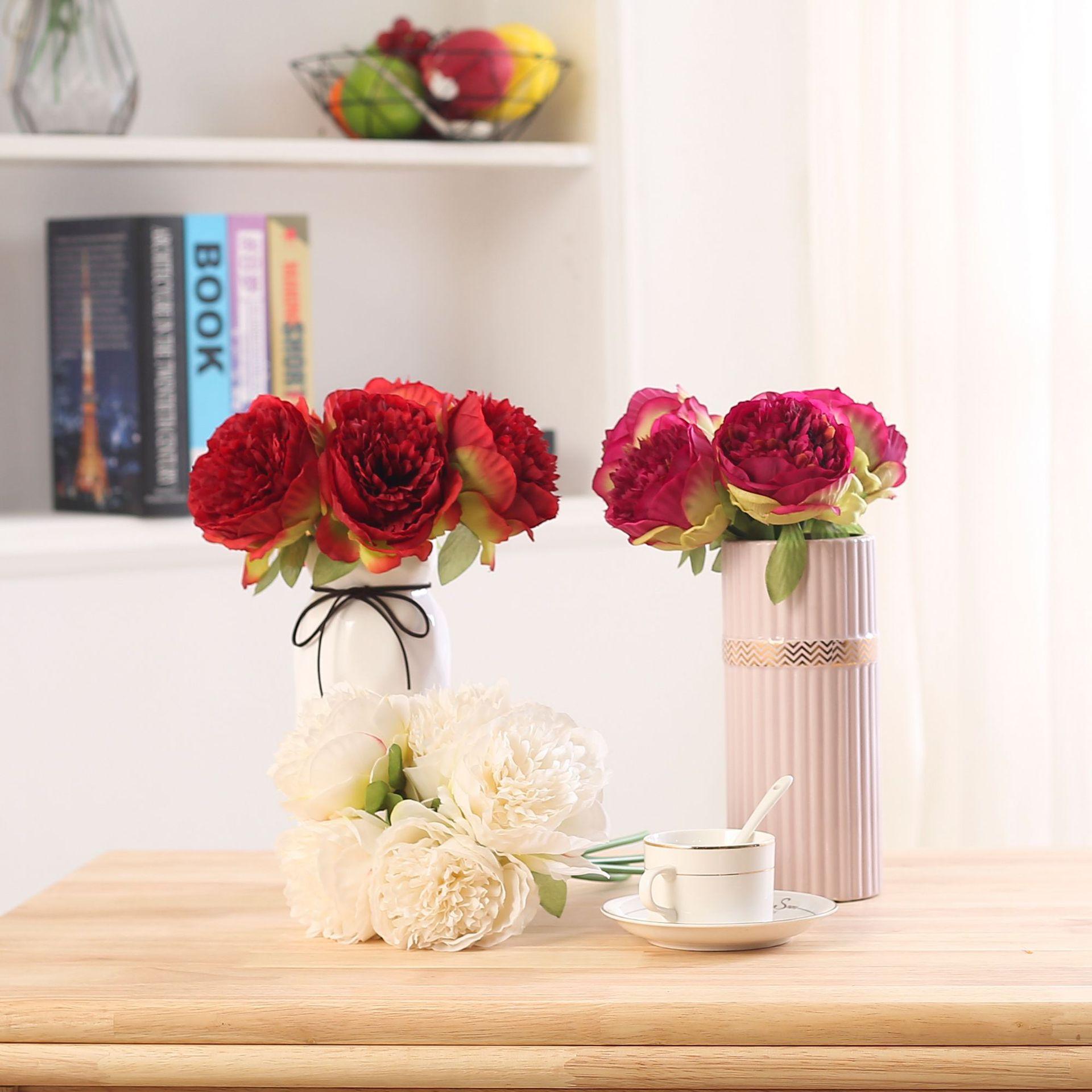 Peonía de 5 Cabezas Simulada Boda Ramo de Plástico Flor de Peonía Falsa Simulada Flor de Seda Europea Peonía de Boda Hogar