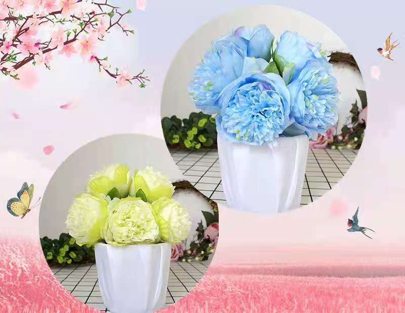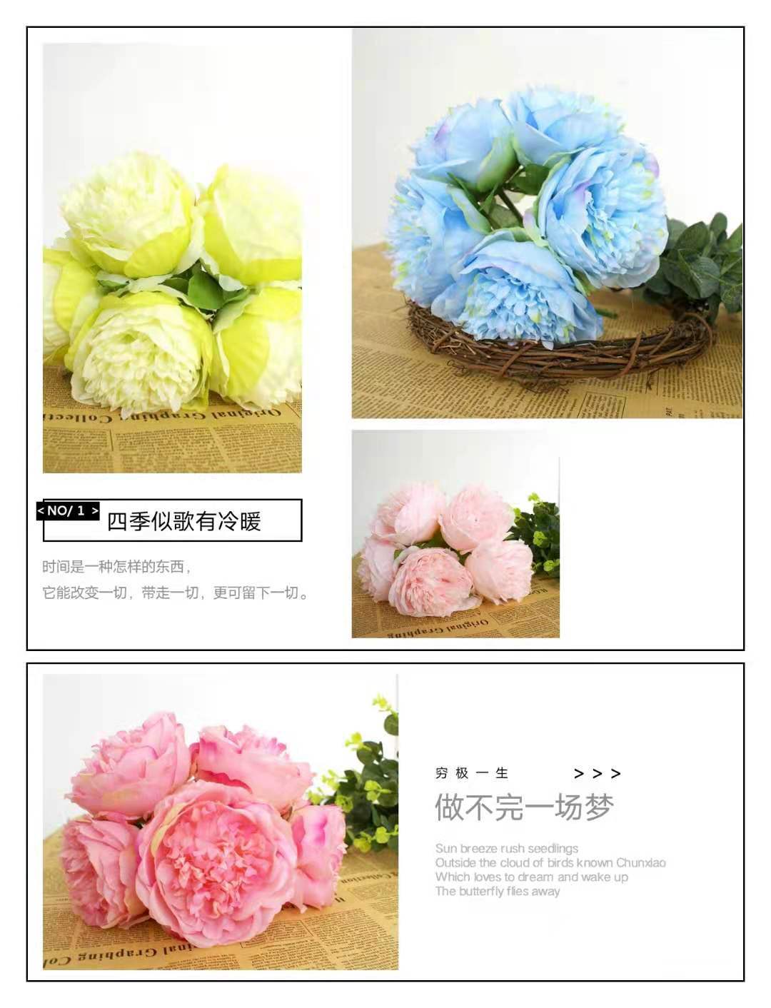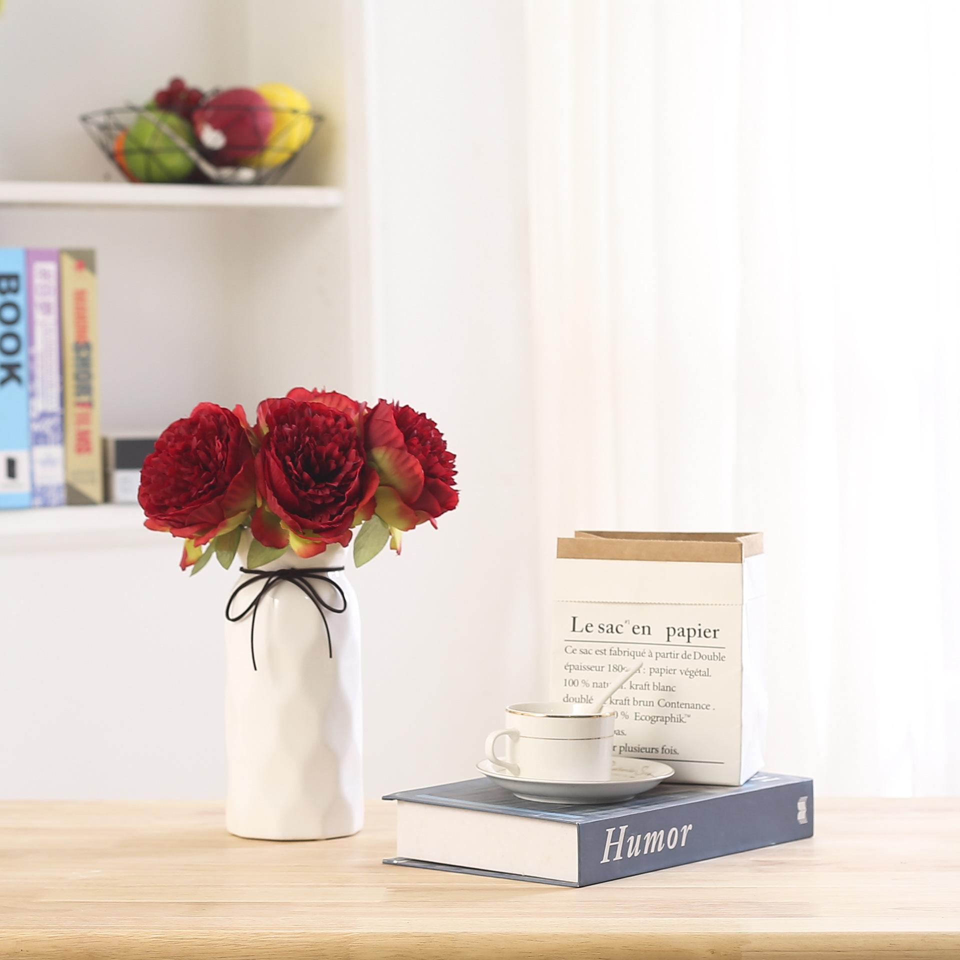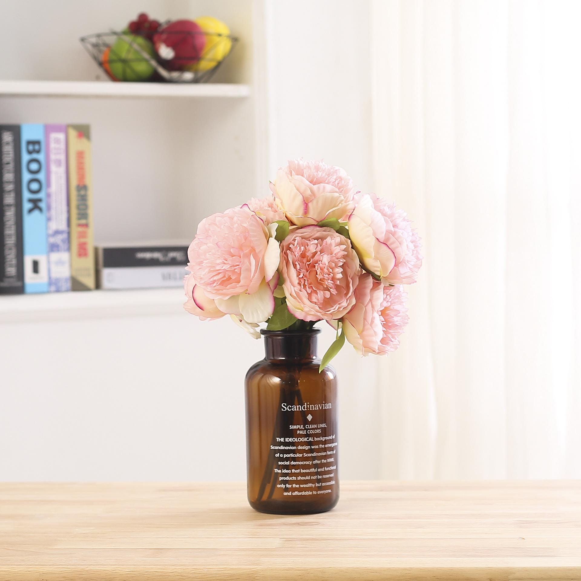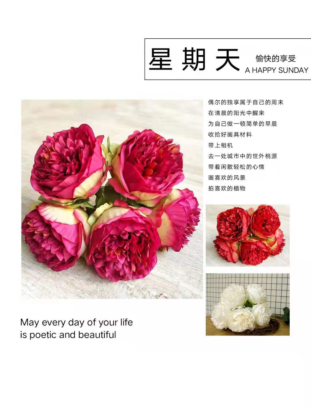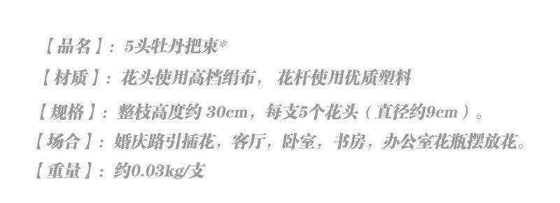 Peonía de 5 Cabezas Simulada Boda Ramo de Plástico Flor de Peonía Falsa Simulada Flor de Seda Europea Peonía de Boda Hogar