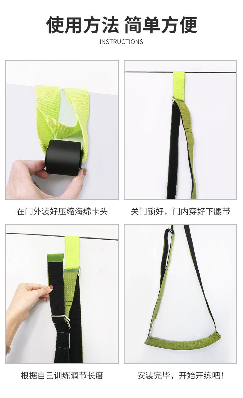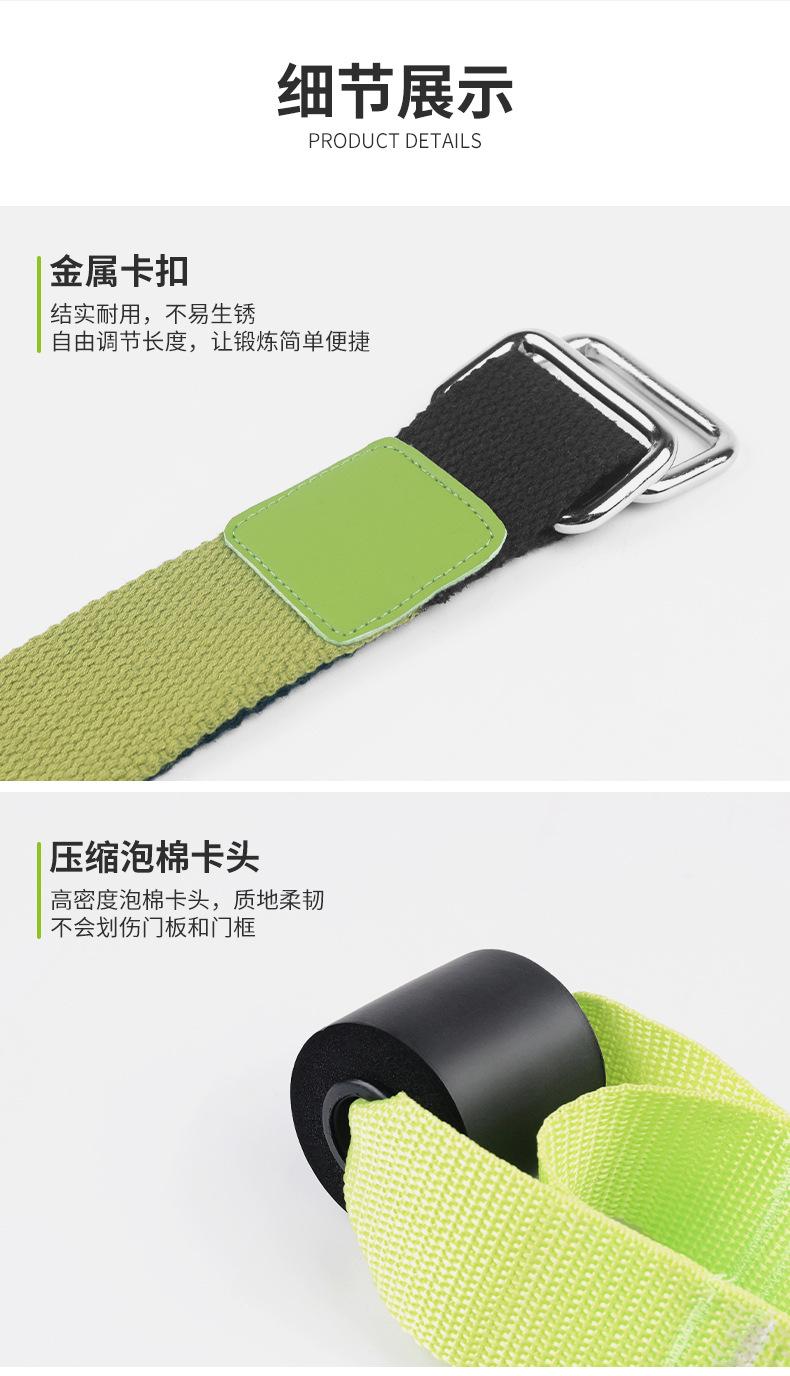 Material: algodón poliéster + cincha lisa + tela textil + espuma + hebilla de hierro + cuero + anclaje de puerta