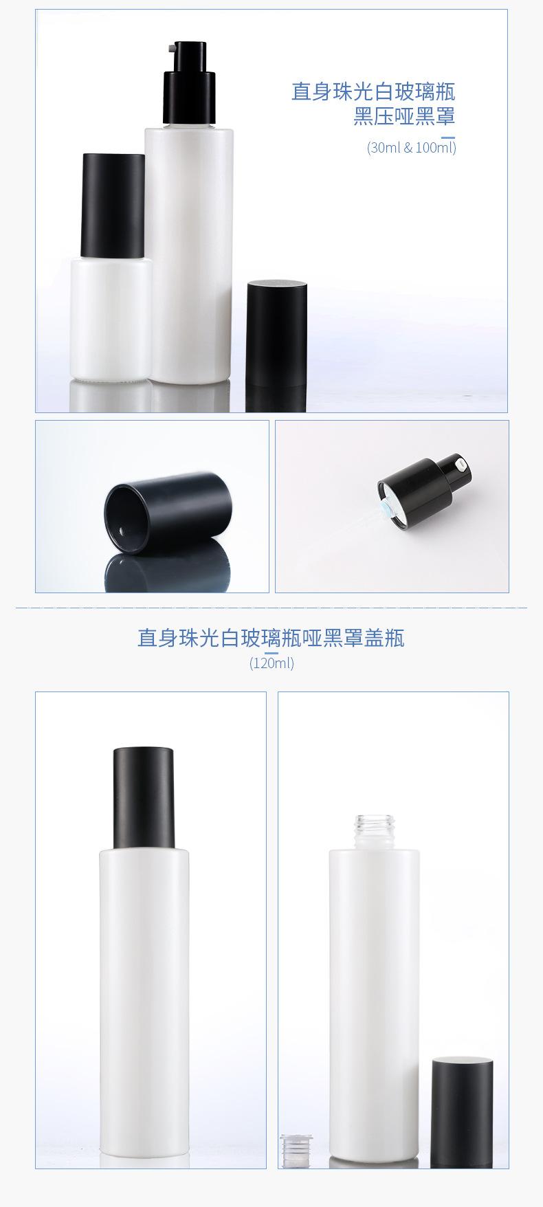 Pearlescent white + black cap * 120ml inner stopper cap bottle * glass
