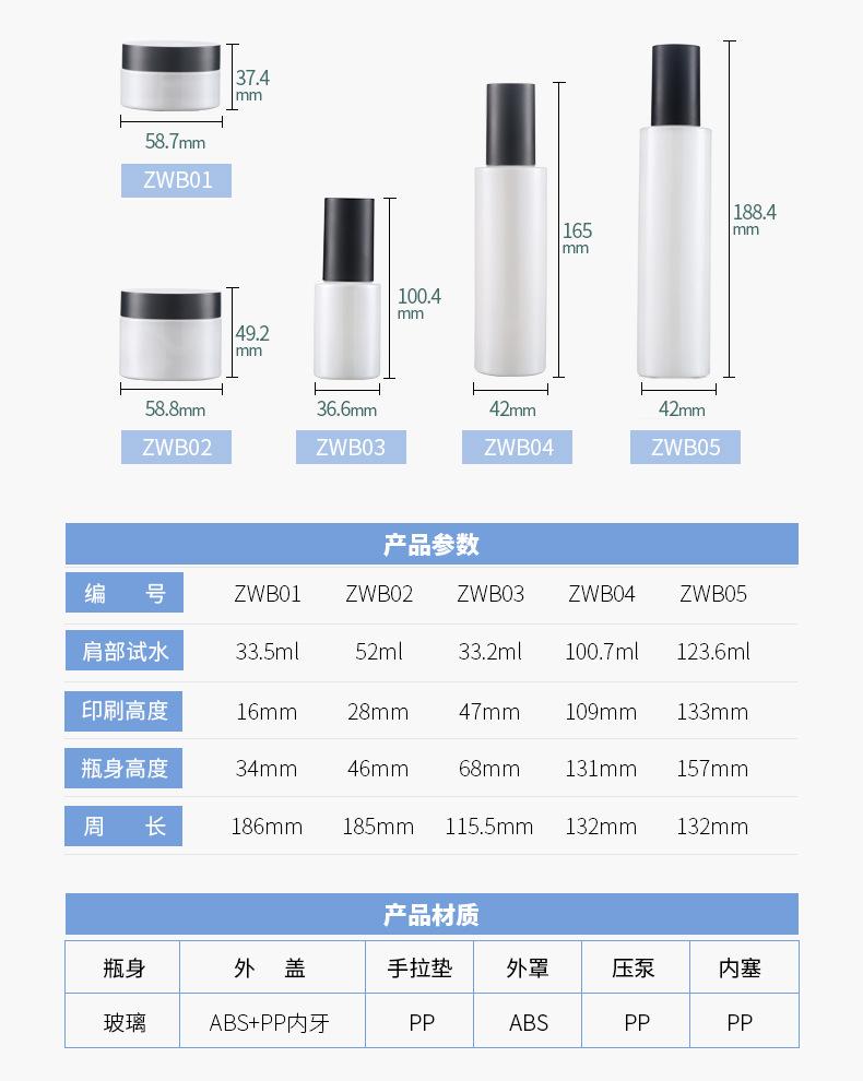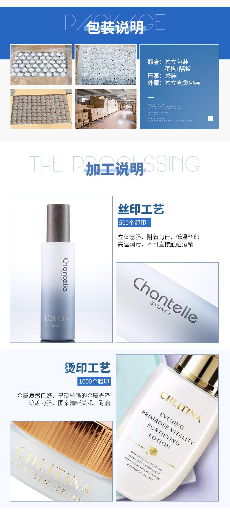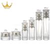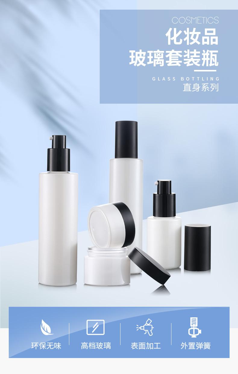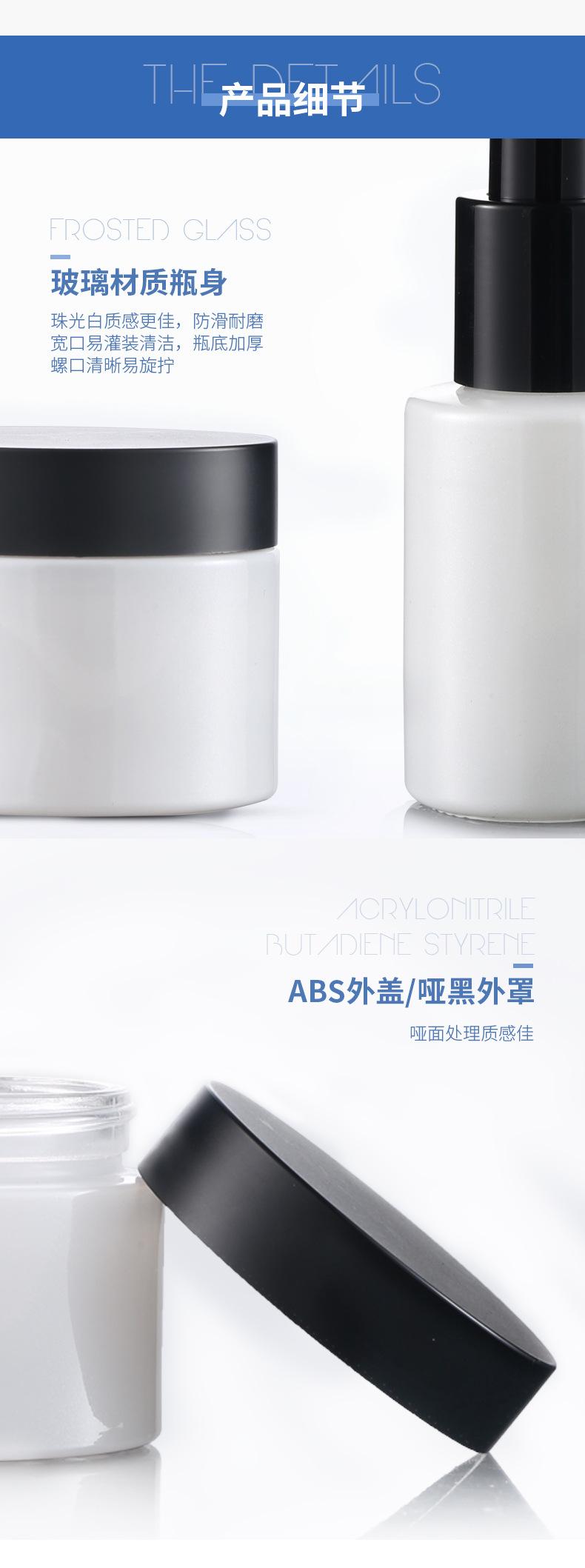 Material de embalaje Xumin: botella de crema de 30-50 g, color blanco perla, juego de emulsión de agua, botella de esencia, botella de vidrio cosmético.